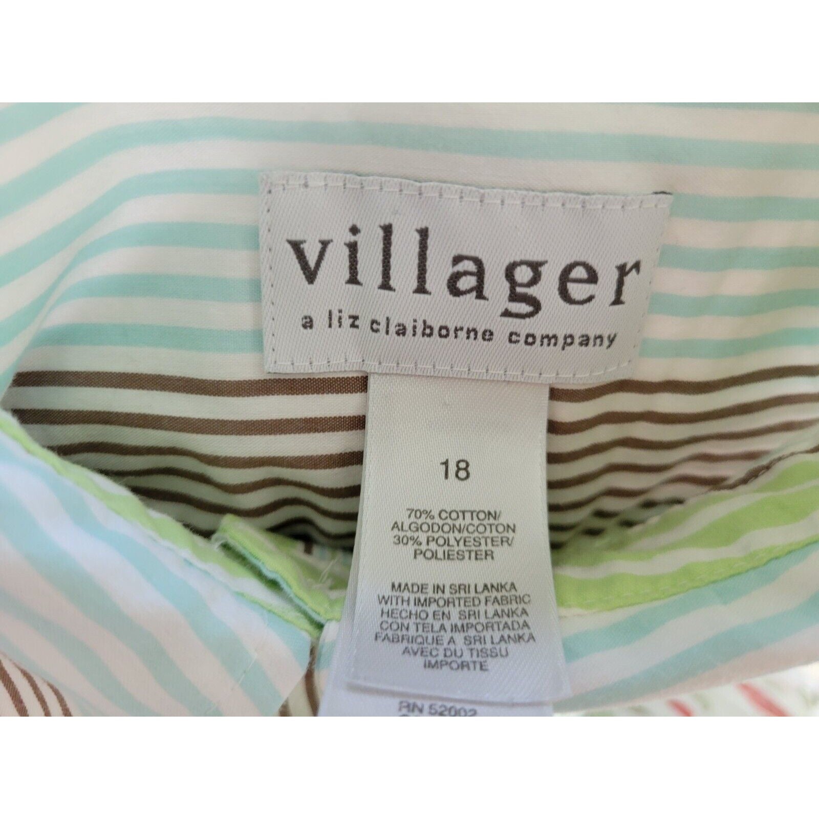 Liz Claiborne Villager Women Top 18 Long Sleeve Green Stripe Collar Cotton