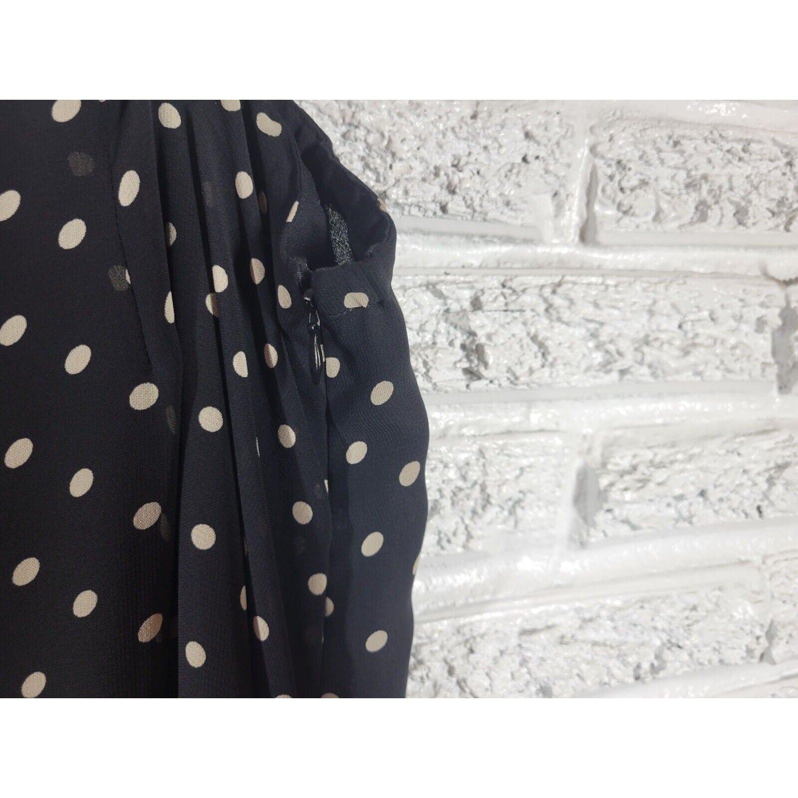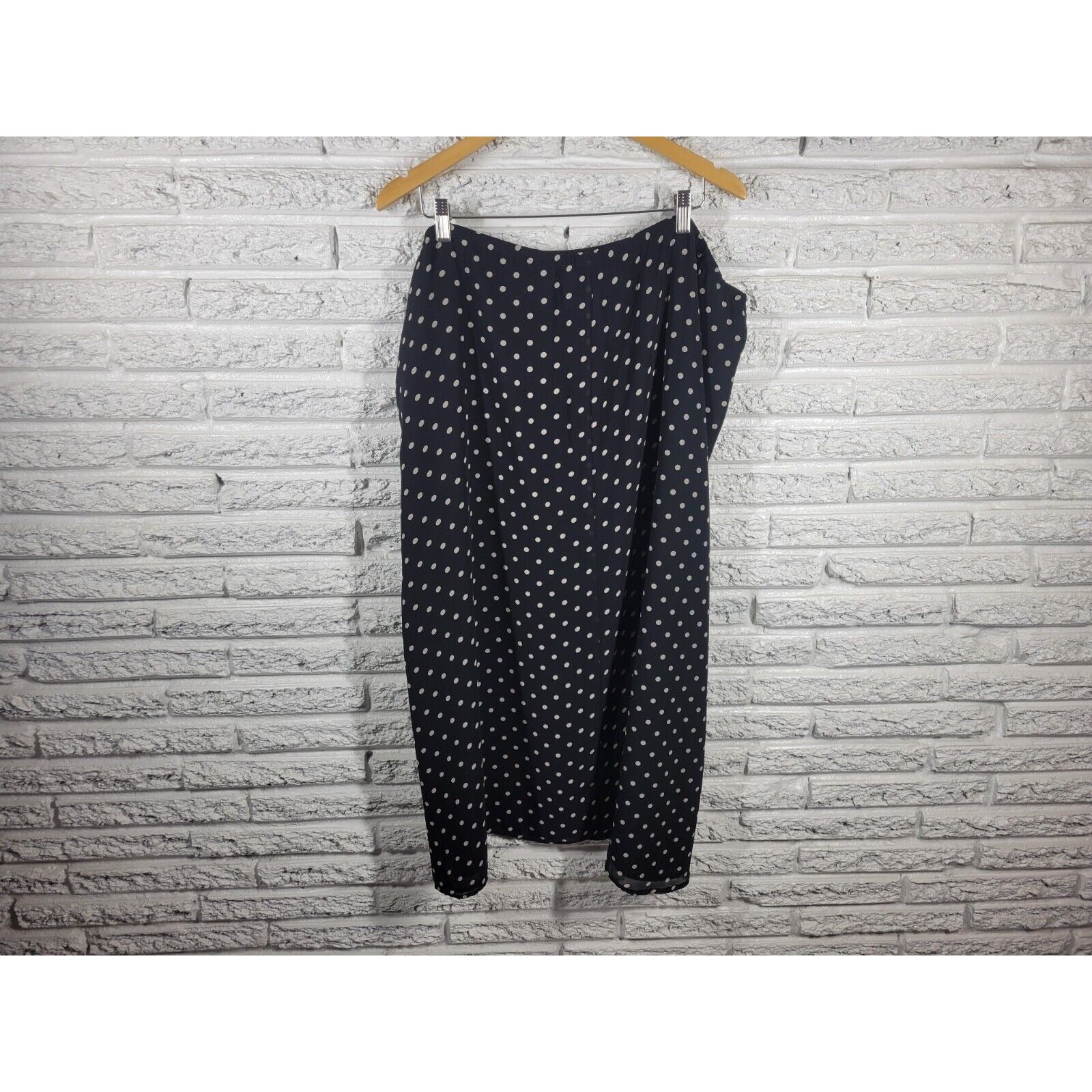Liz Claiborne Villager Womens Skirt 22W Midi Black Polka Dot Sheer Slit Lined