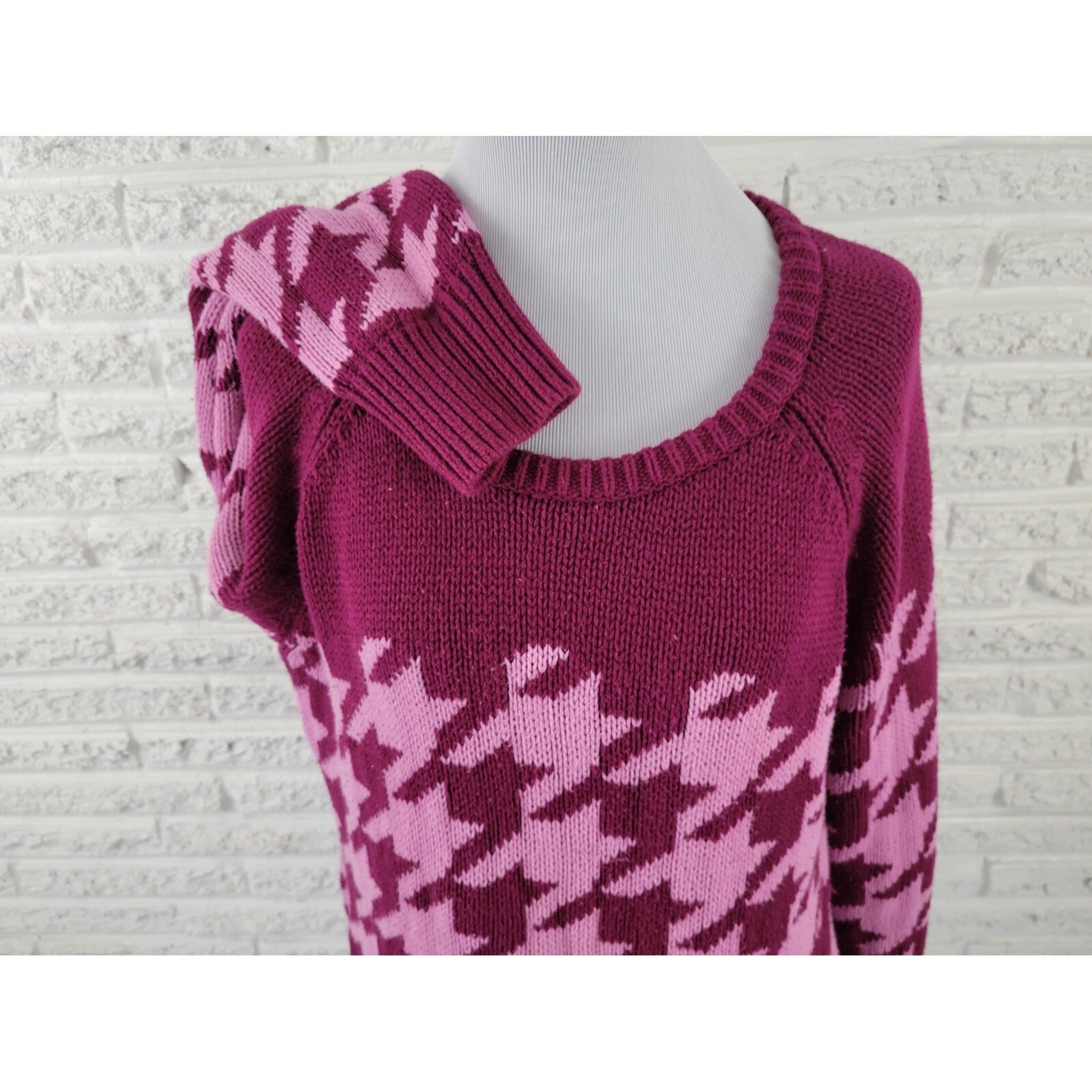 Liz Claiborne Women Sweater Extra Large XL Pullover Burgundy Pink Geometric Soft