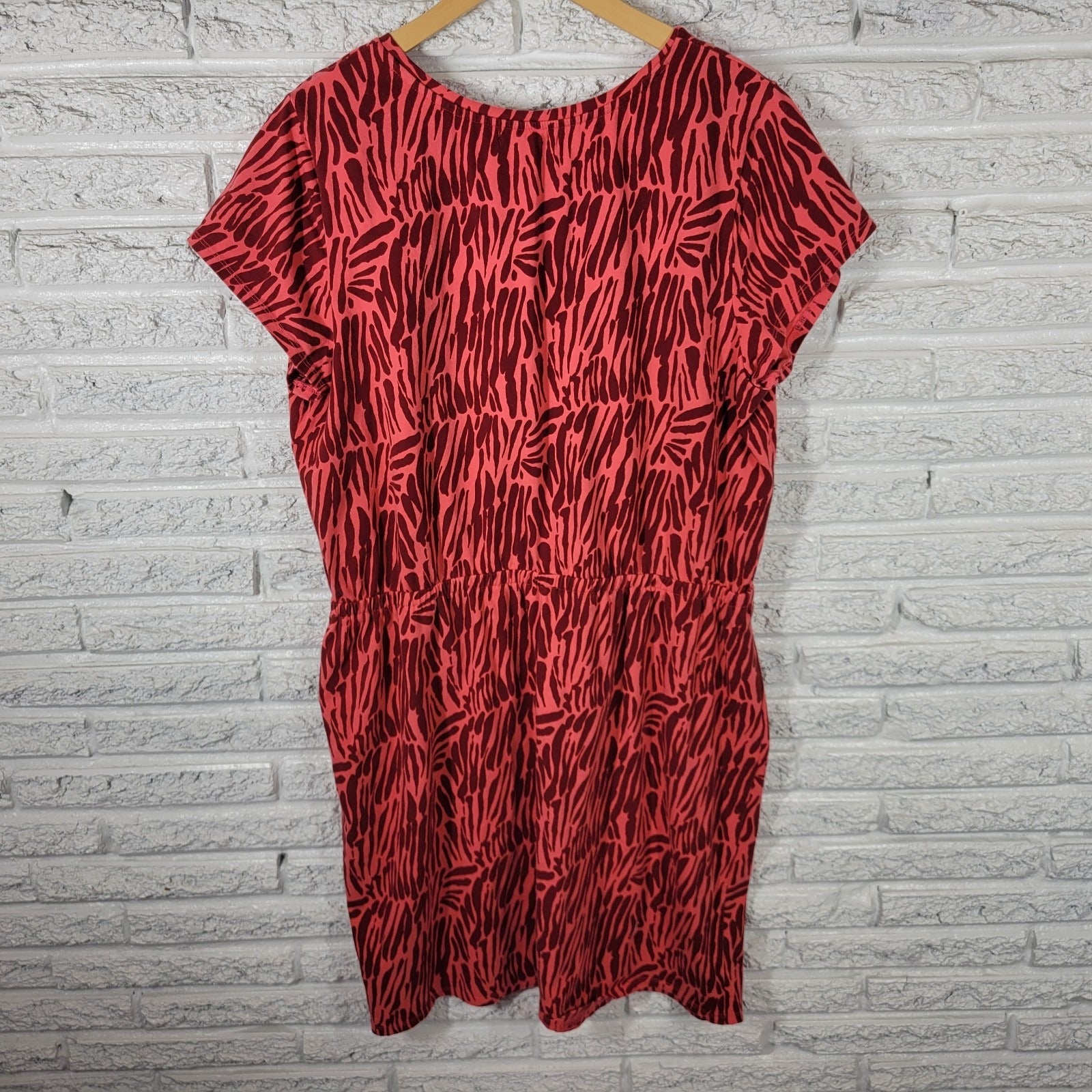 Liz Claiborne Womens Dress 1X Plus Fit Flare Short Sleeve Pink Animal Print