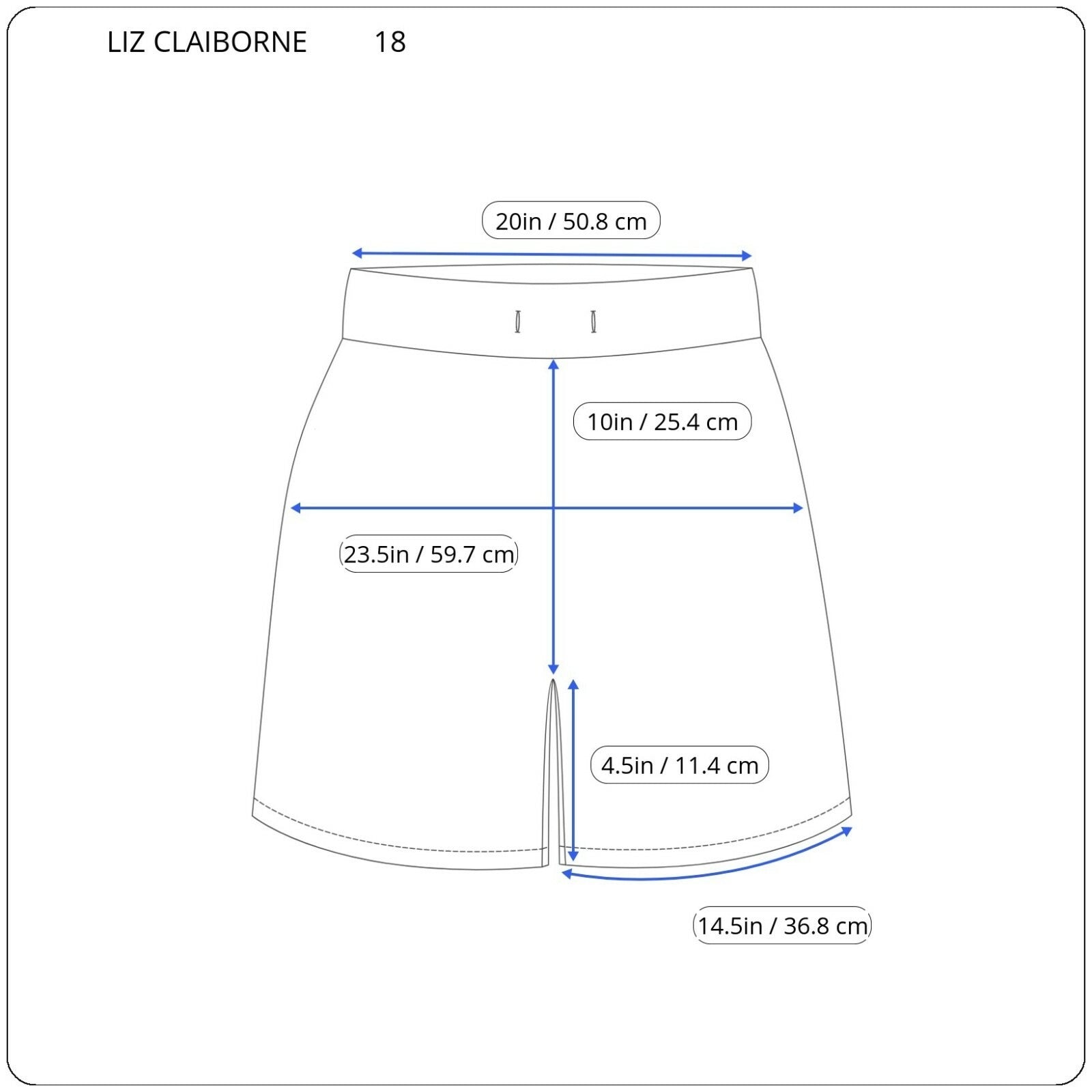 The Liz Claiborne Women's Shorts in size 18 are made of a cotton blend material and feature a blue floral pattern. They have a mid-rise fit and a zip fly closure with slash pockets. These chino-style shorts are machine washable and perfect for travel or casual occasions.