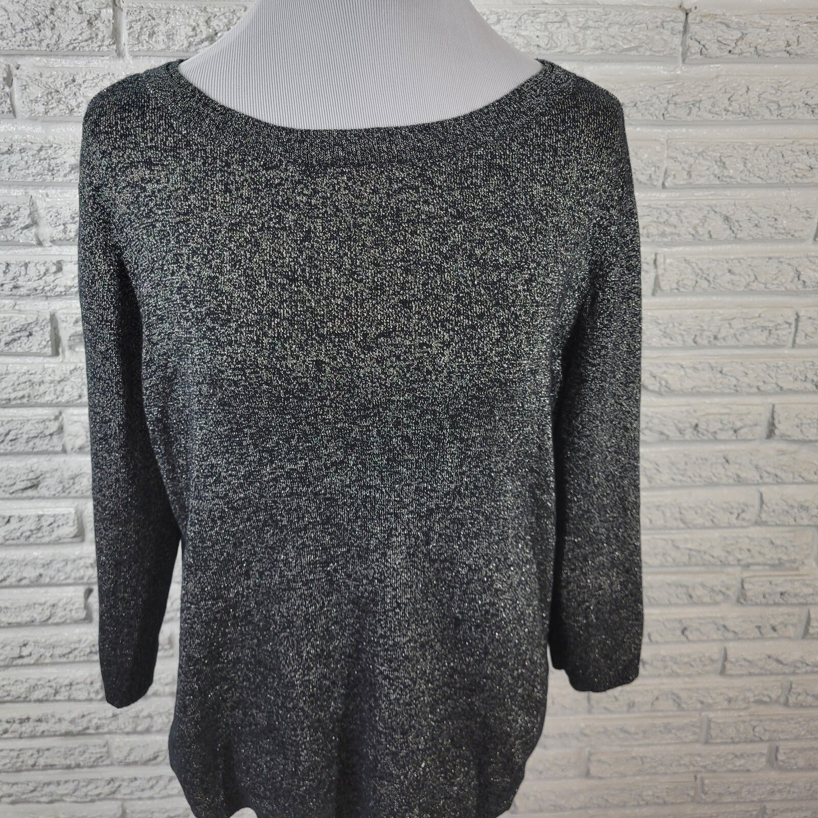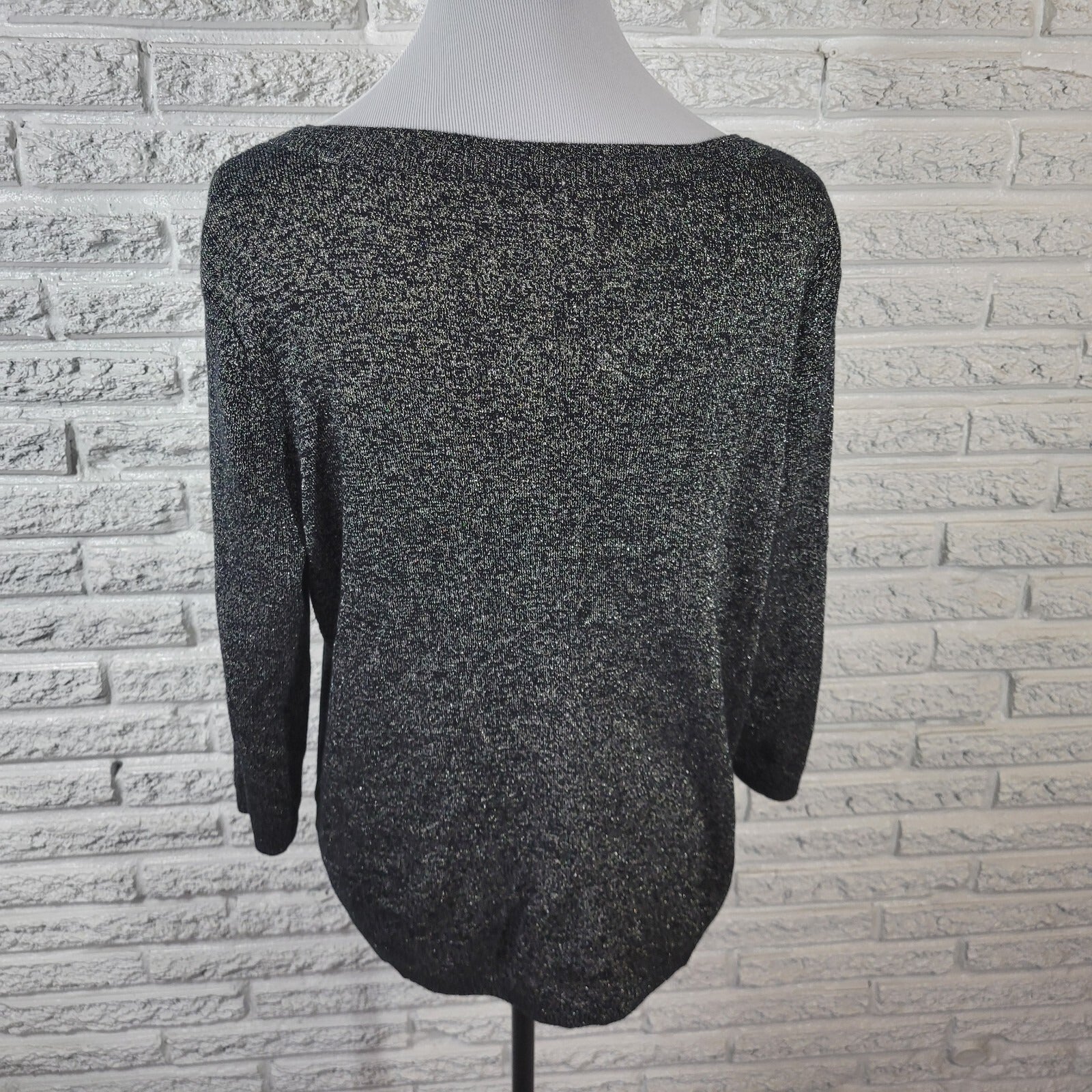 Liz Claiborne Womens Sweater Extra Large XL Black Silver Metallic 3/4 Sleeve