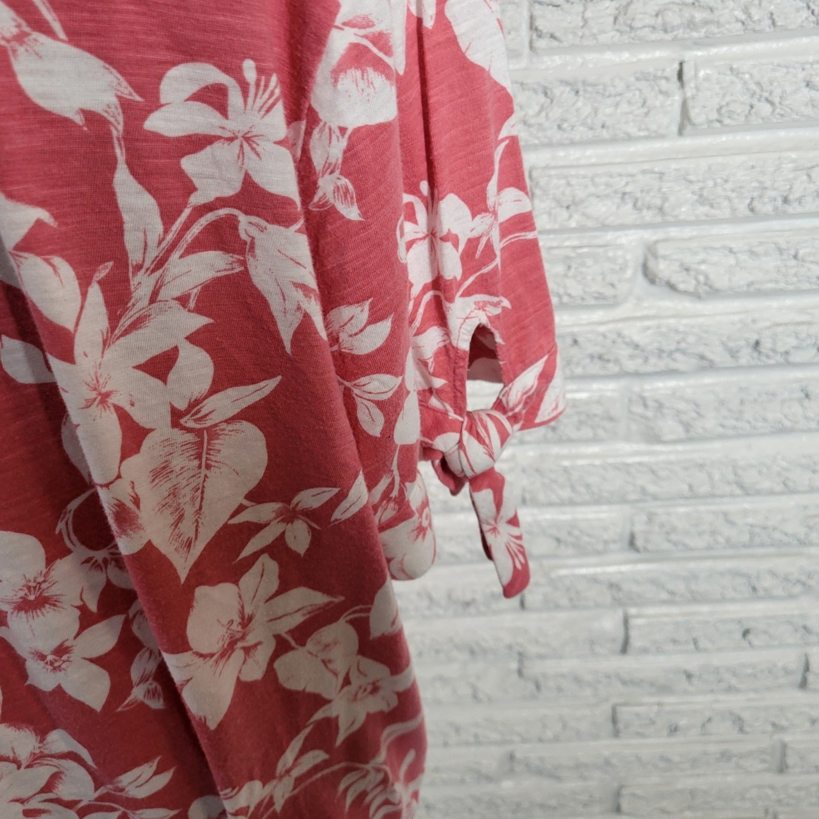 Liz Claiborne Womens Top 1X Plus Tee Short Tied Sleeves Pink Floral Lightweight