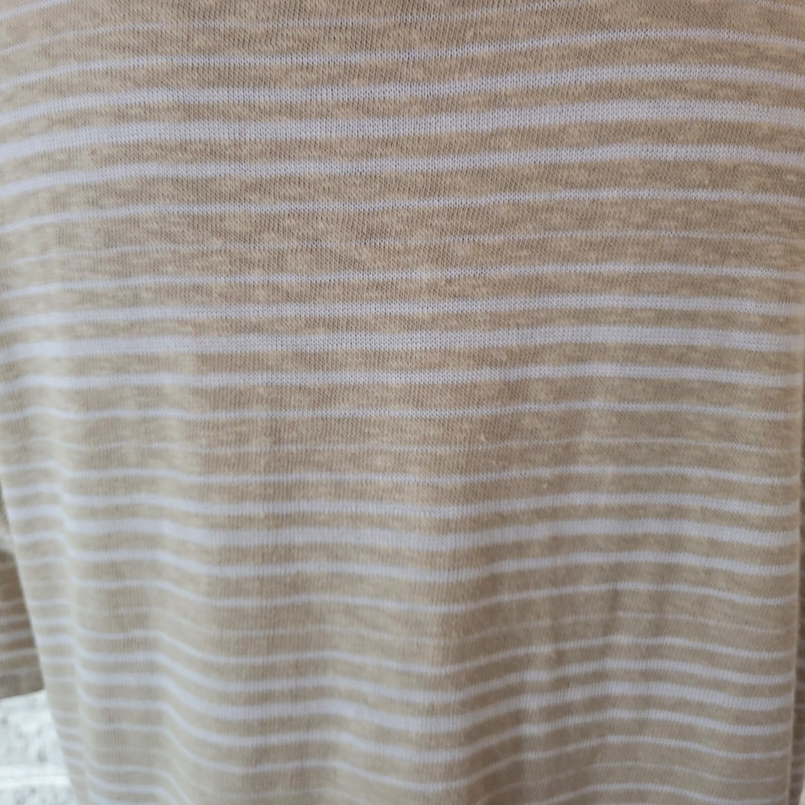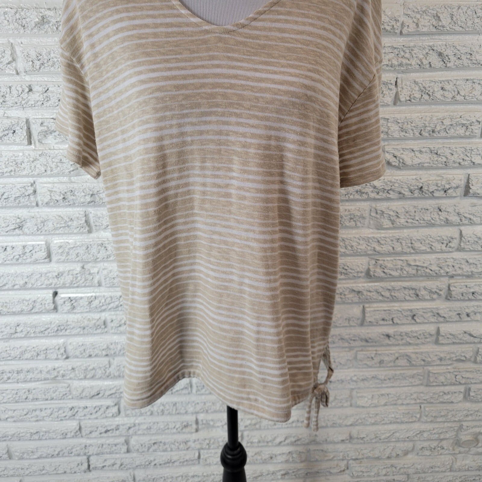 Liz Claiborne Womens Top Extra Large Knit Short Sleeve Tied Hem Beige Stripe