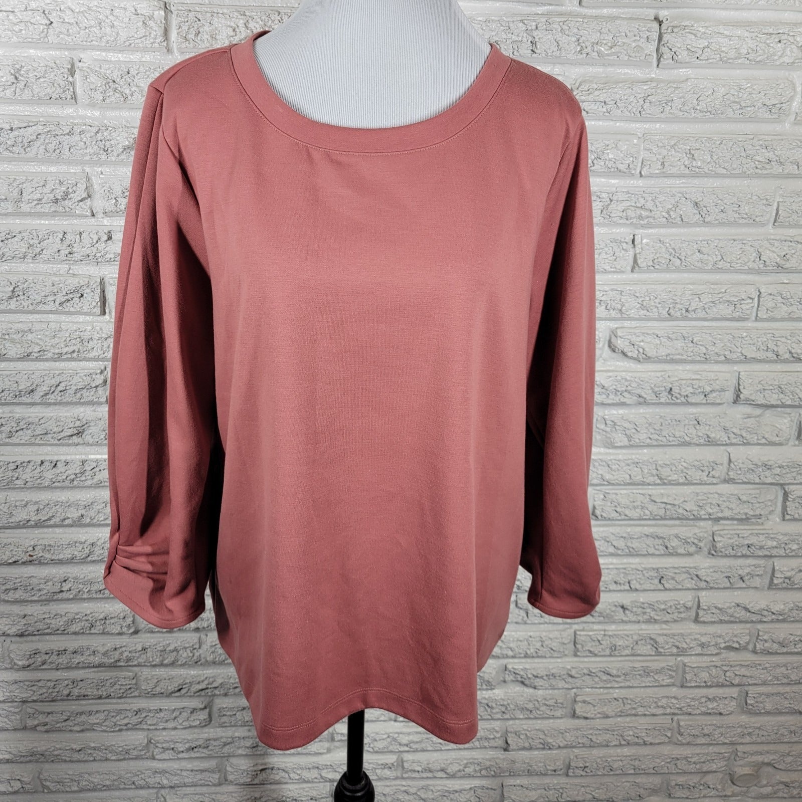 Liz Claiborne Womens Top XL Ruched 3/4 Sleeve Dusty Rose Poly Blend Soft Comfy