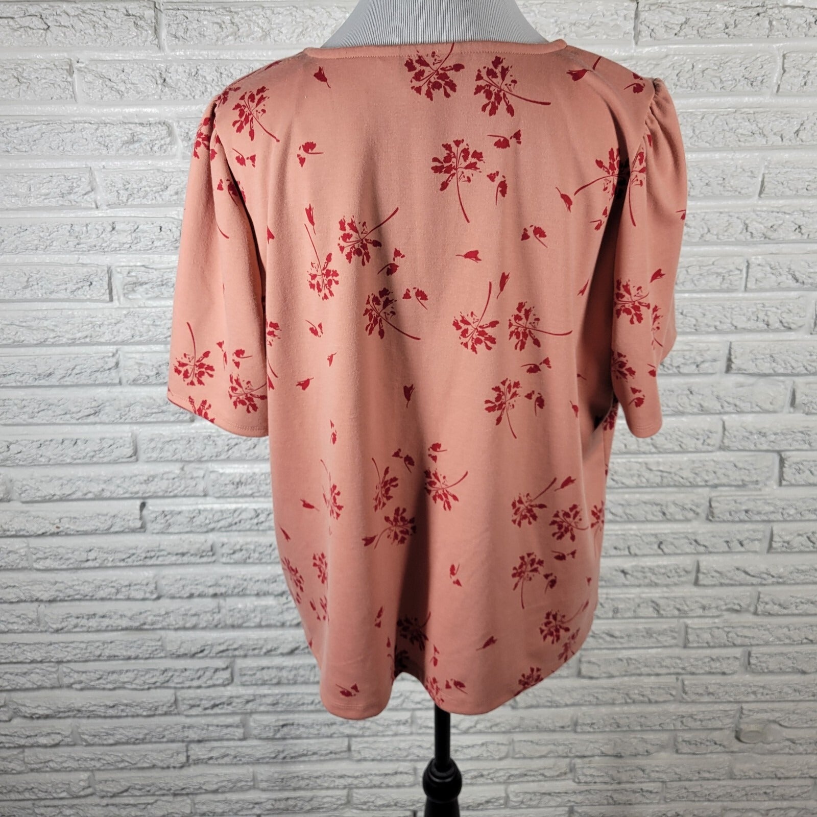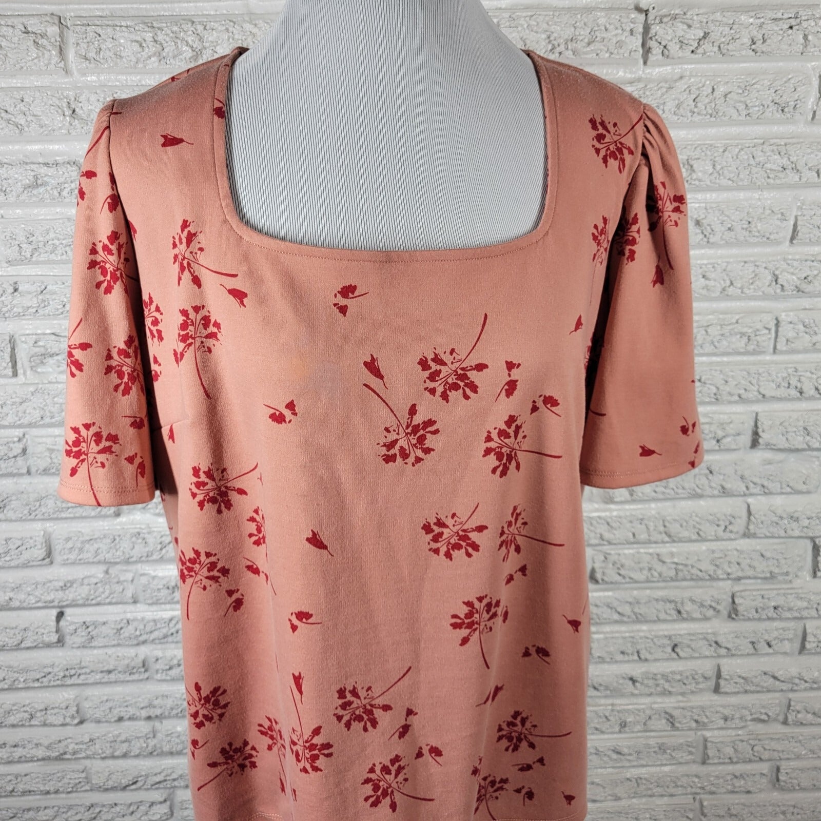 Liz Claiborne Womens Top XXL Plus Tee Short Sleeve Pink Floral Casual Poly Blend