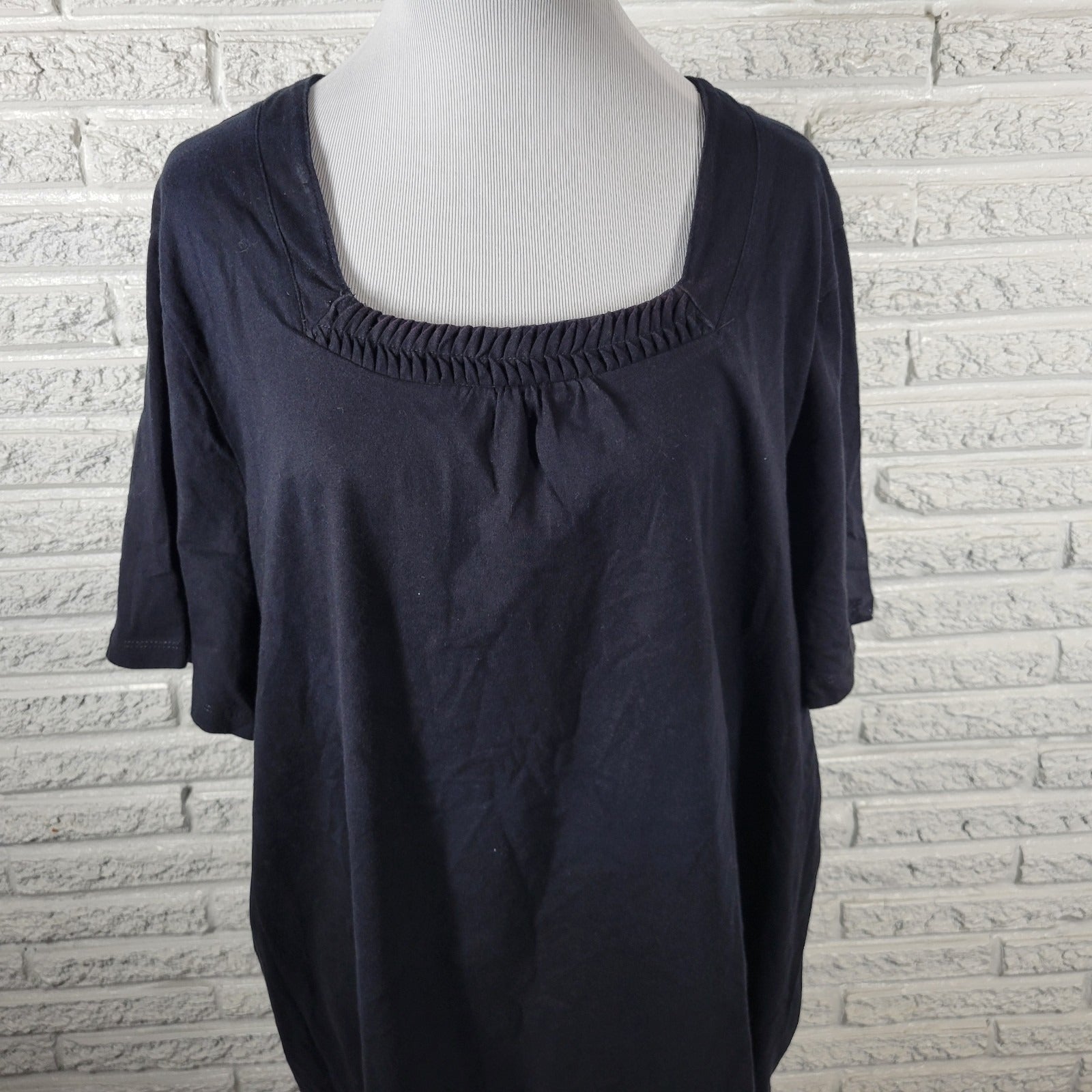 Liz Me Women Top 2X Plus Tunic Black Cotton Pintucked Square Neck Comfy Casual
