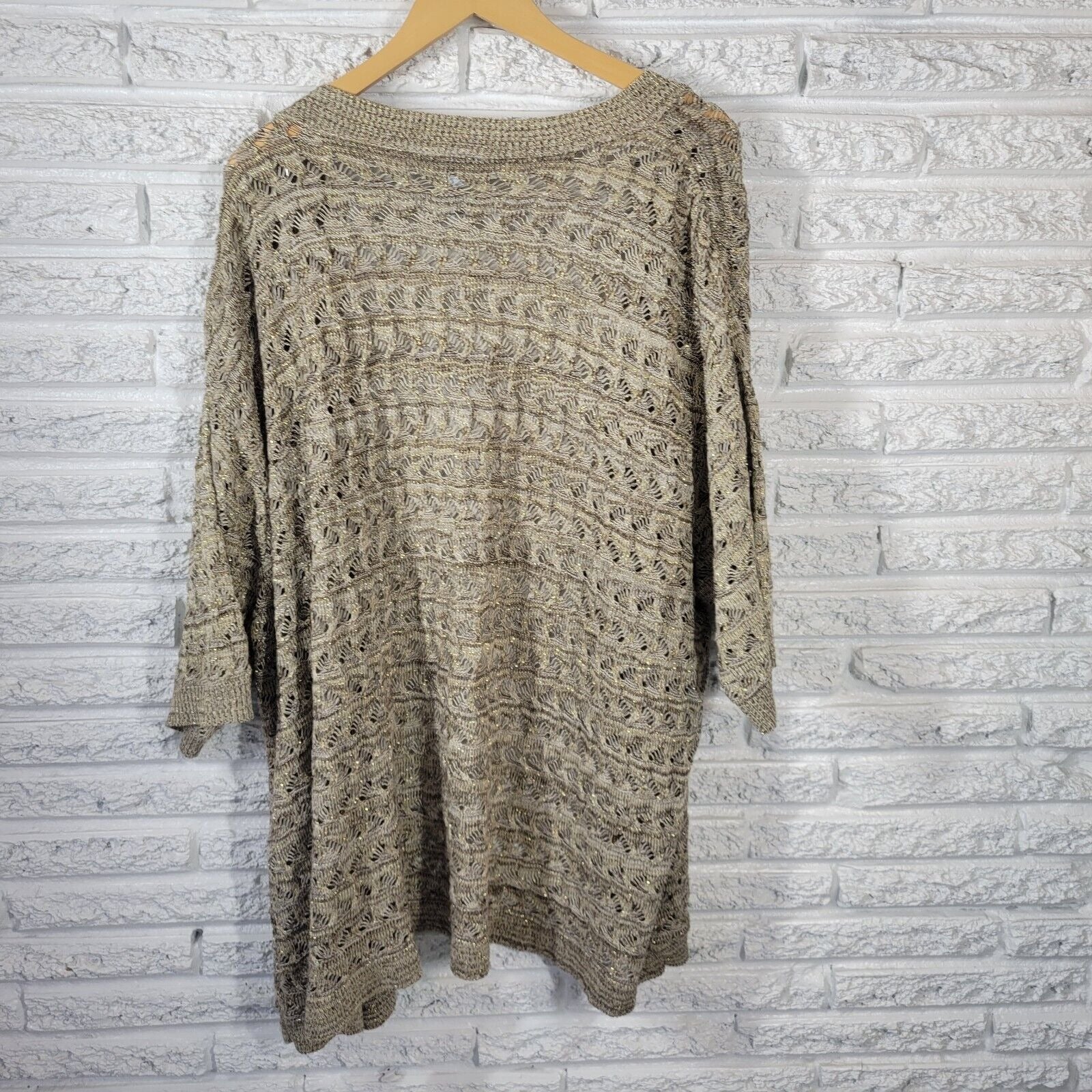 Liz Me Womens Sweater 4X Plus Cardigan Open Gold Tan Metallic Thread Acrylic