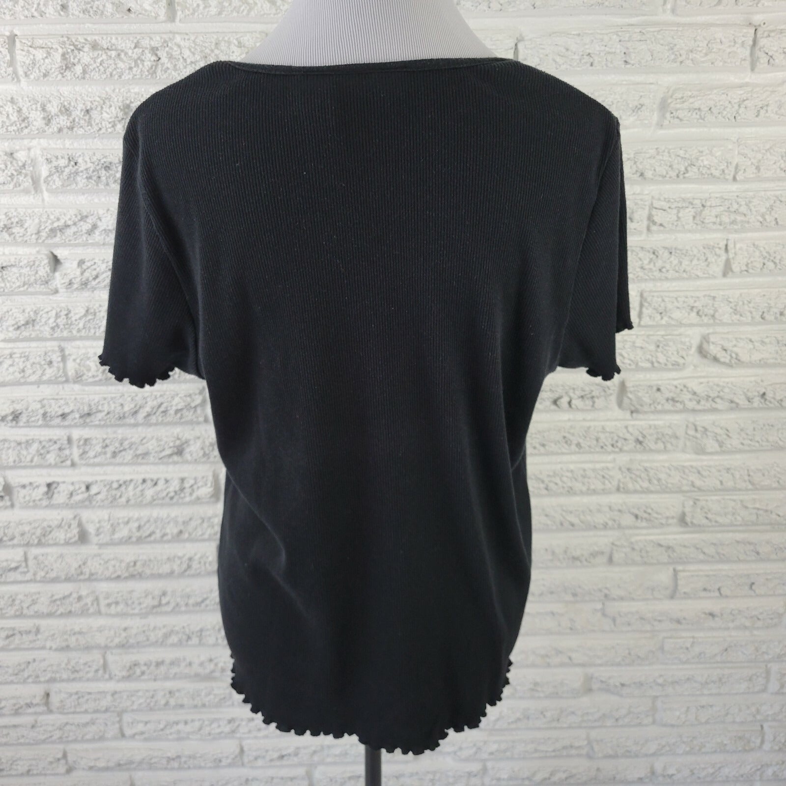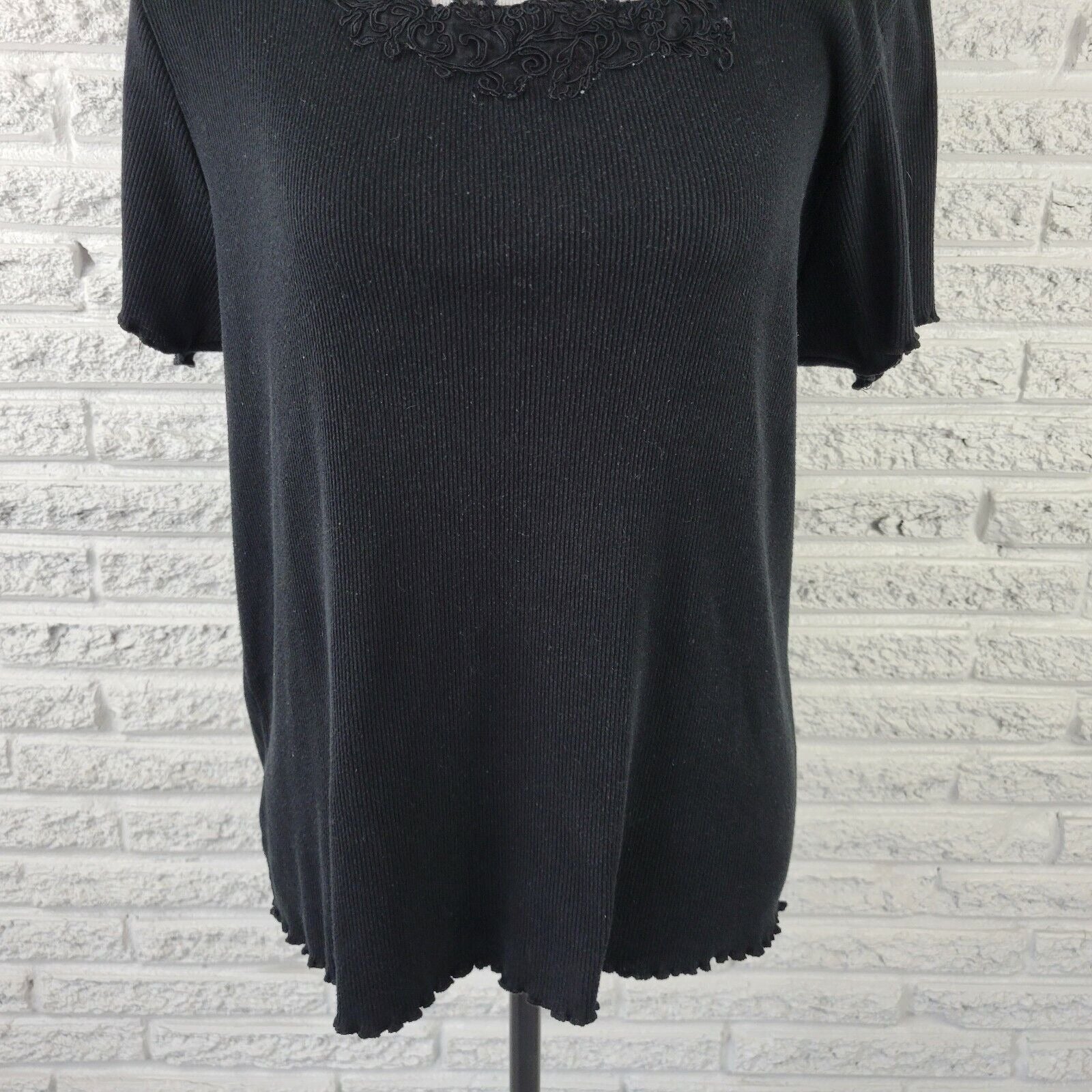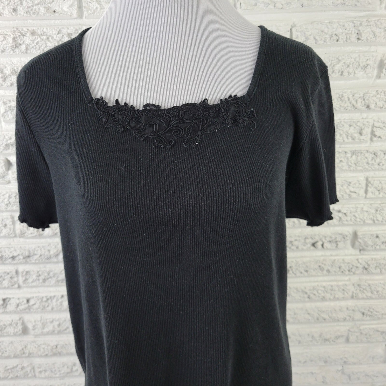 Liz & Me Womens Top 0X Plus Pullover Short Sleeve Black Lace Square Neck Casual