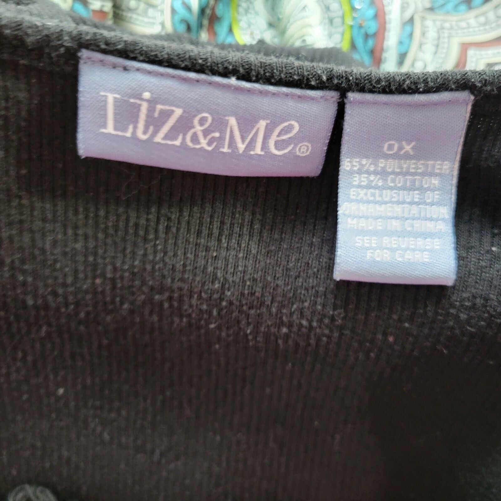 This Liz & Me women's top is a perfect addition to your casual wardrobe. The pullover design with a square neckline and short sleeves makes it easy to wear. It comes in black color and is made of a polyester blend material that is machine washable. The blouse is perfect for all seasons and has a regular fit, making it suitable for plus-size women. The top does not have any graphic print, but it has a solid pattern that adds a basic touch to your outfit. It is suitable for casual occasions and can be paired with jeans or shorts. The blouse is made in China and is not handmade. Get this Liz & Me women's top today and add a basic piece to your wardrobe.