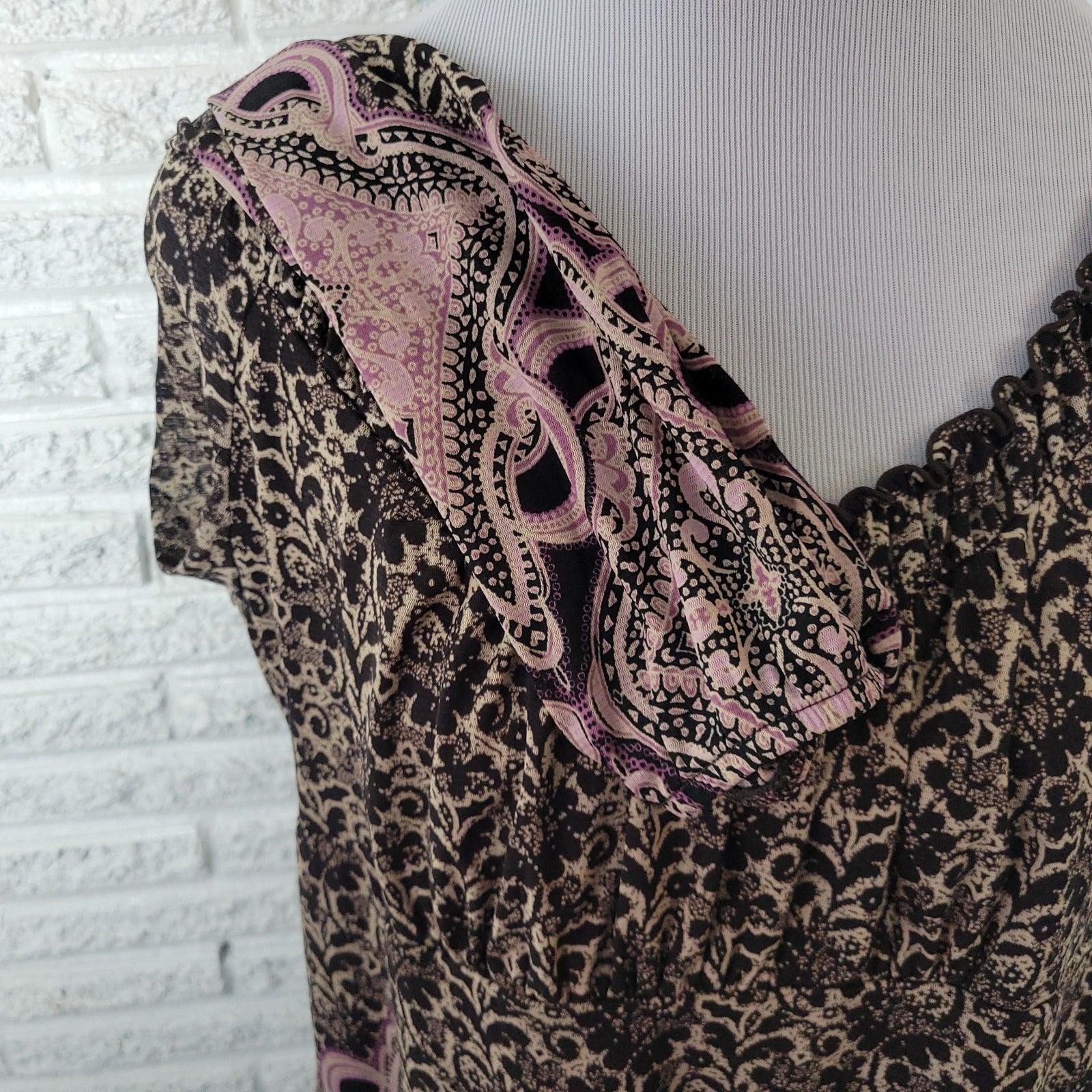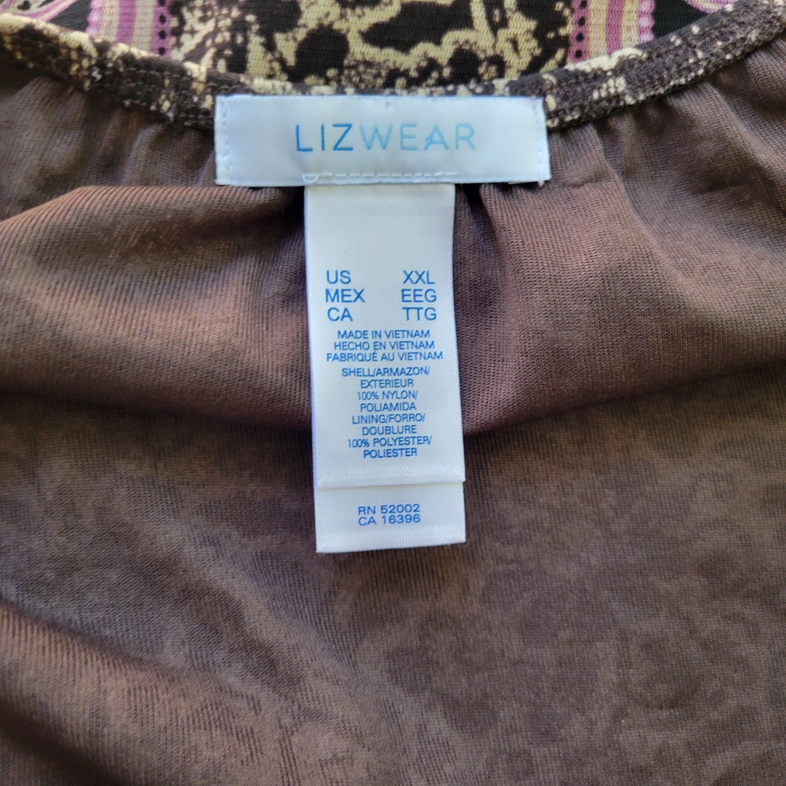 Liz Wear Women Top XXL Plus Long Sleeve Black Geometric Frilly Neck Comfy Office