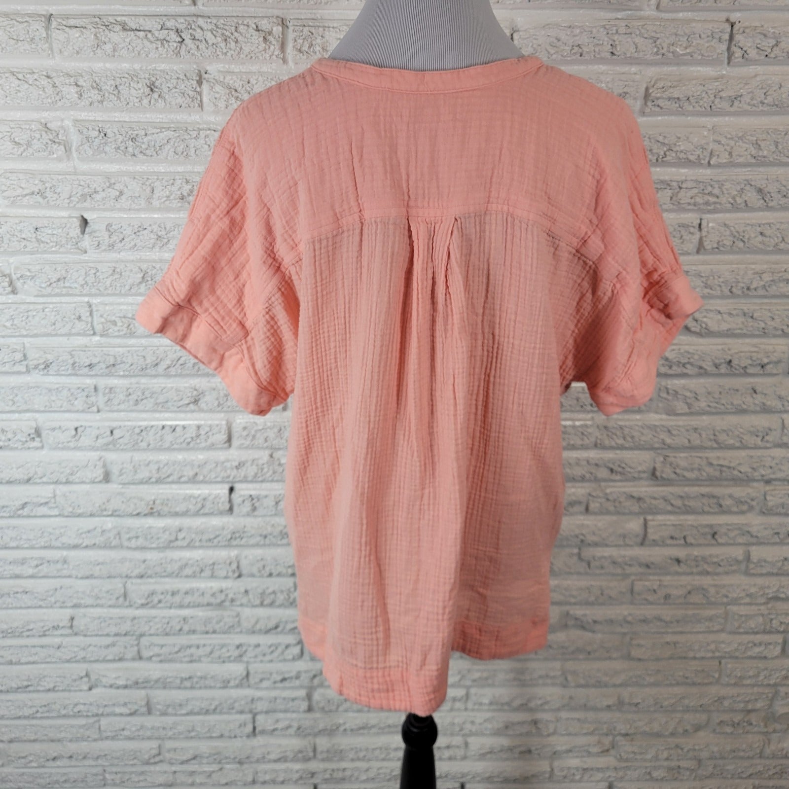 LL Bean Womens Top XL Short Sleeve Pink Cotton Cloud Gauze Casual Lightweight