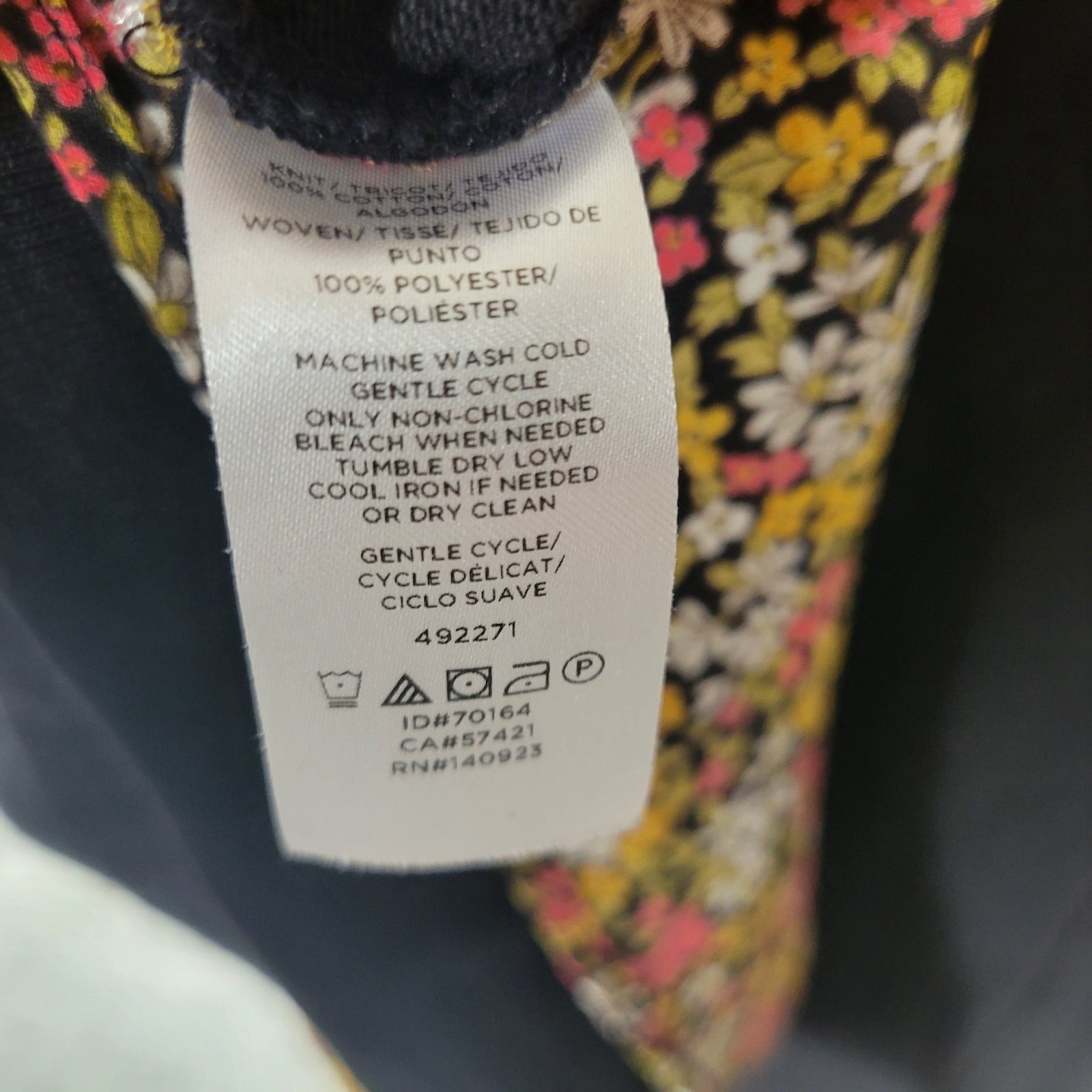Loft Womens Top 20 22 Plus Long Sleeve Split Back Floral Chiffon Black Cotton