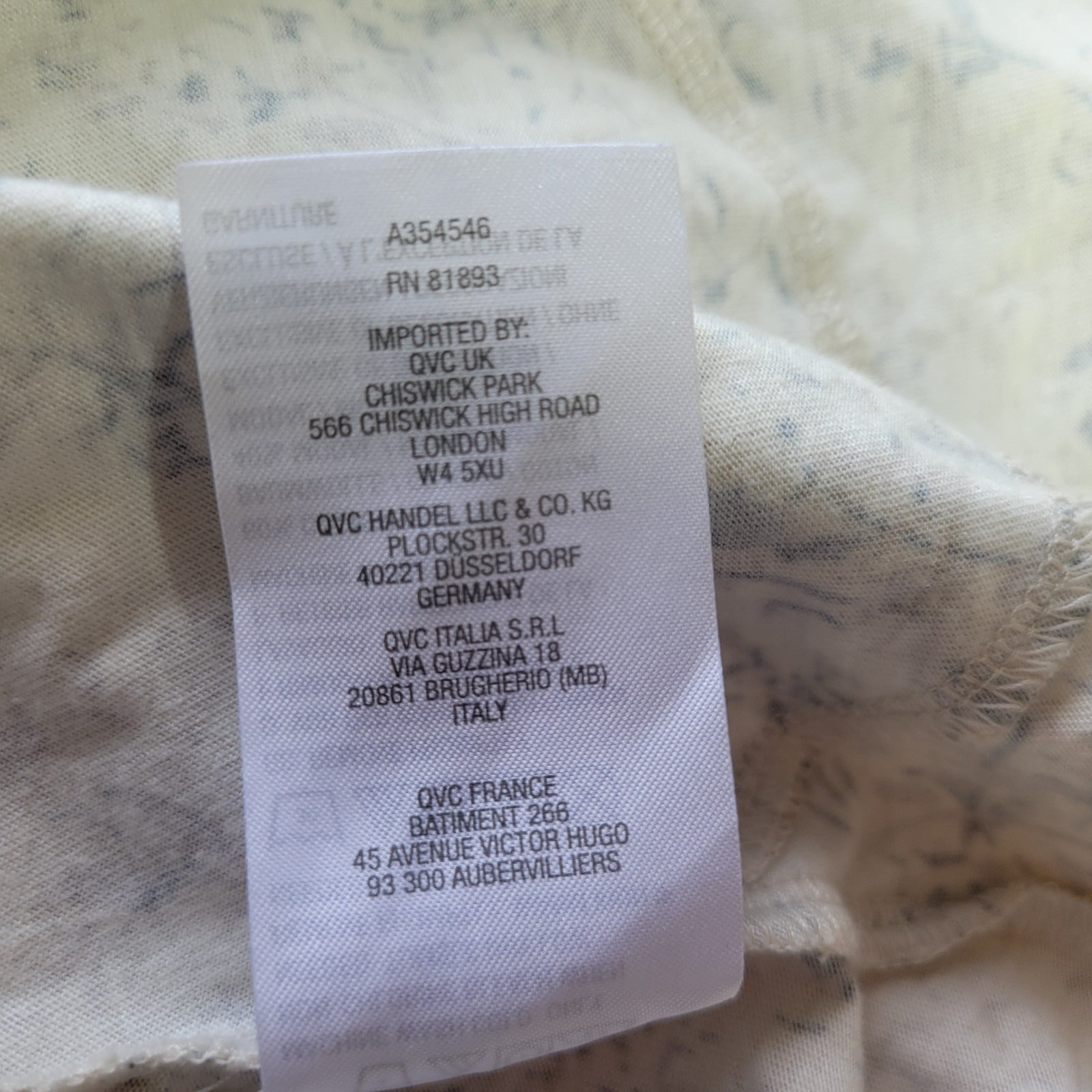 The LOGO Lori Goldstein QVC Women's Top in size 1X Plus is a stylish tunic blouse in beige/blue colors with floral embroidery for a feminine touch. Made from a comfortable cotton blend material, this pullover top features short sleeves and a round neckline, making it suitable for casual or travel occasions. The regular fit and stretchy fabric ensure a comfortable wear throughout all seasons. Perfect for adding a touch of elegance to your wardrobe with its embroidered accents and flattering tunic style.