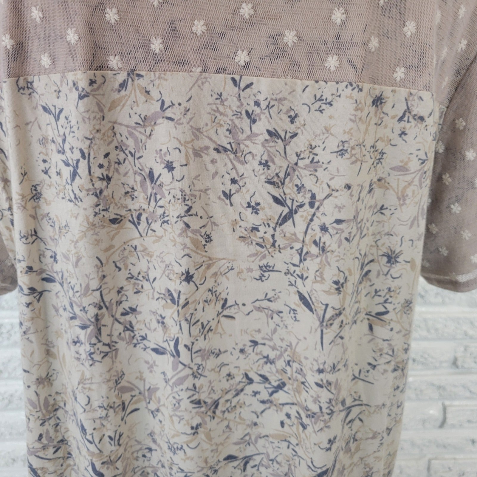 LOGO Lori Goldstein QVC Womens Top 1X Plus Tunic Beige Floral Embroidered Mesh