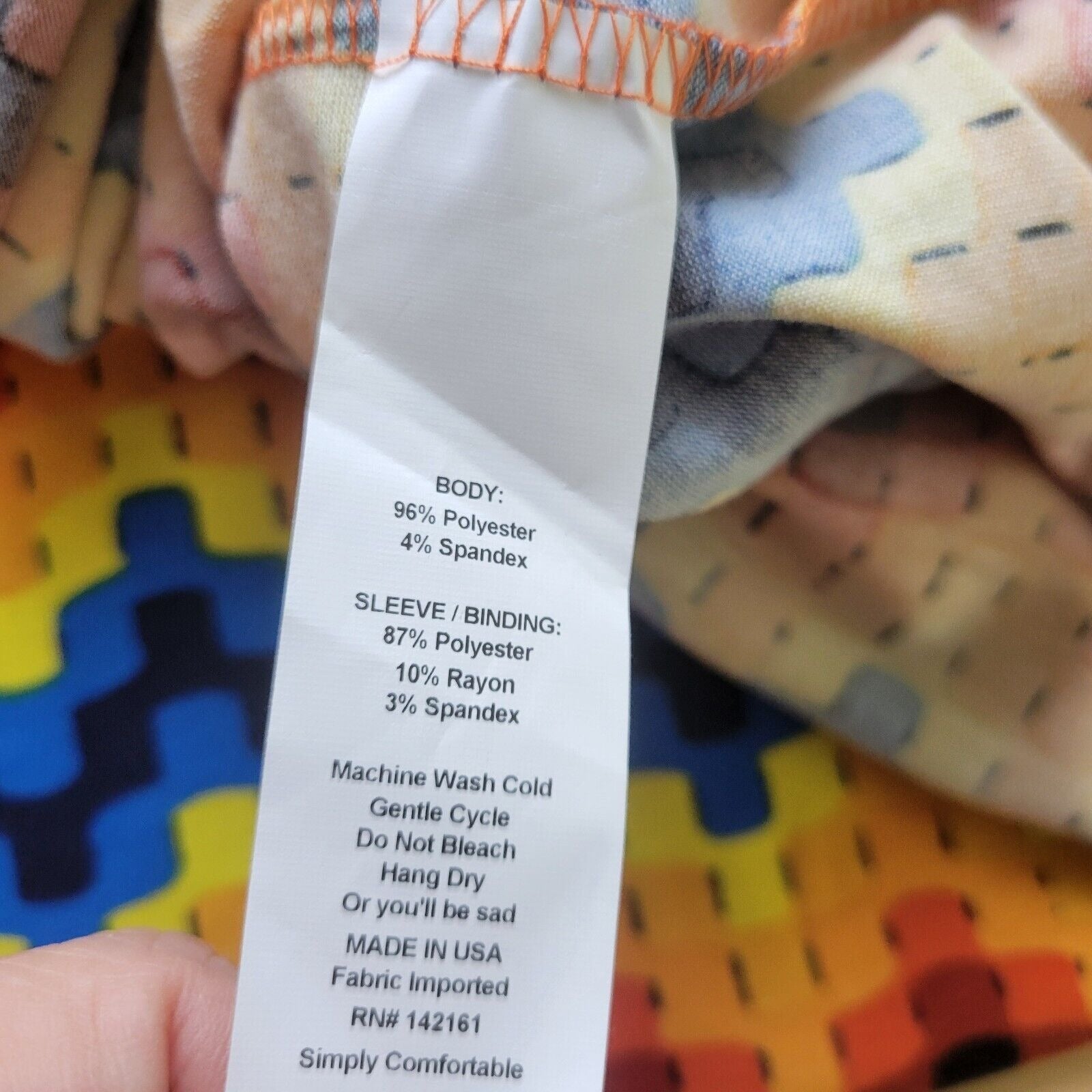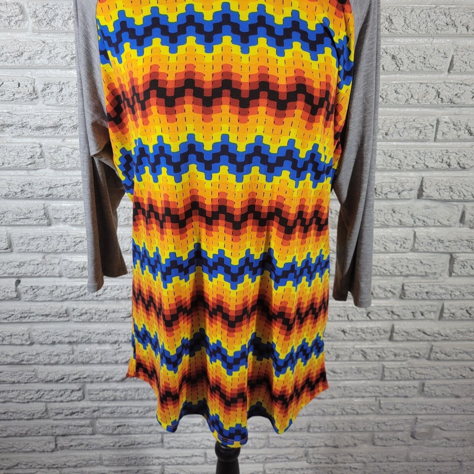 Lularoe Women Top Extra Large Tee 3/4 Raglan Sleeve Blue Yellow Geometric Pixel