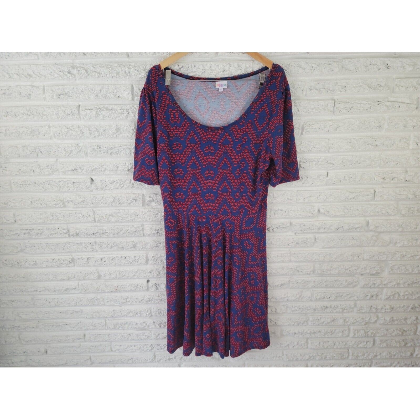 Lularoe Womens Dress 3XL Plus Shirt Short Sleeve Pullover Blue Geometric Casual