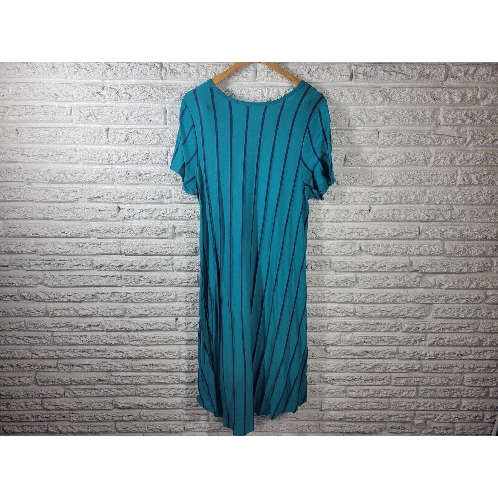 Lularoe Womens Dress Extra Large XL Tee Knit Comfy Asymmetric Blue Stripe Pocket