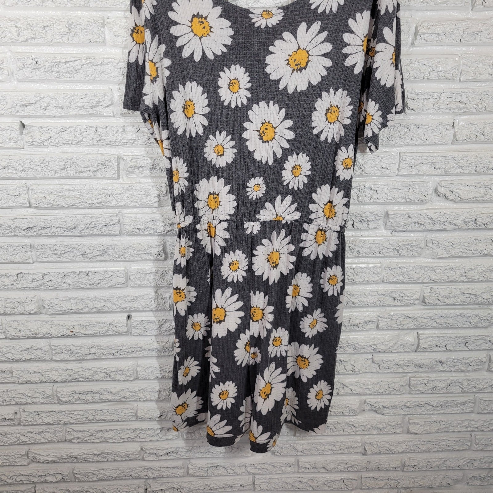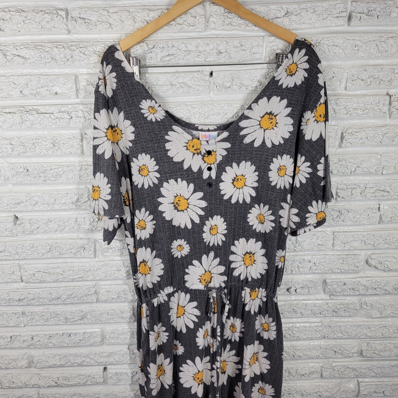 Lularoe Womens Romper 2XL Plus Shorts Gray Daisy All Over Pockets Poly Blend