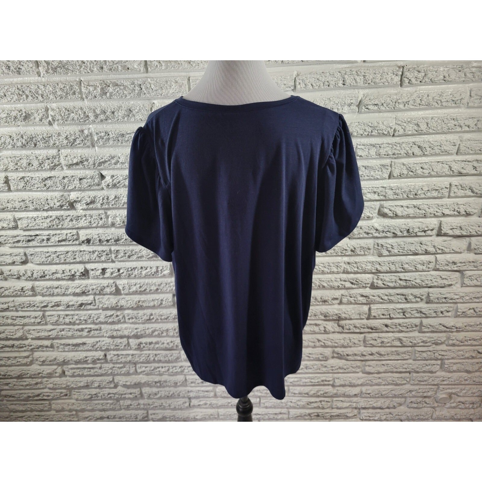 Lularoe Womens Top 2XL Plus Remi Short Sleeve Poly Blend Basic Blue Casual