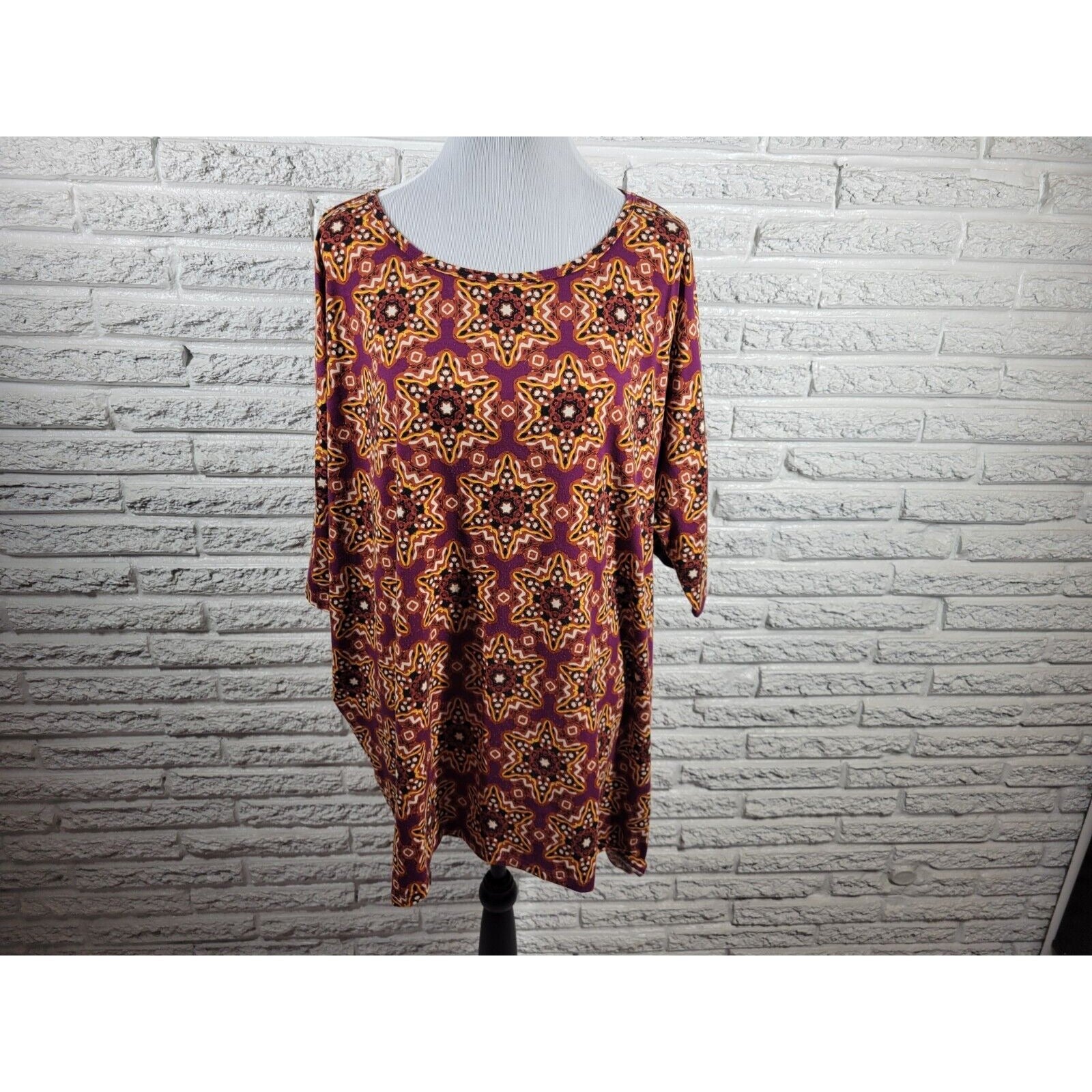 Lularoe Womens Top 3XL Plus Short Sleeve Purple Geometric Asymmetric Casual