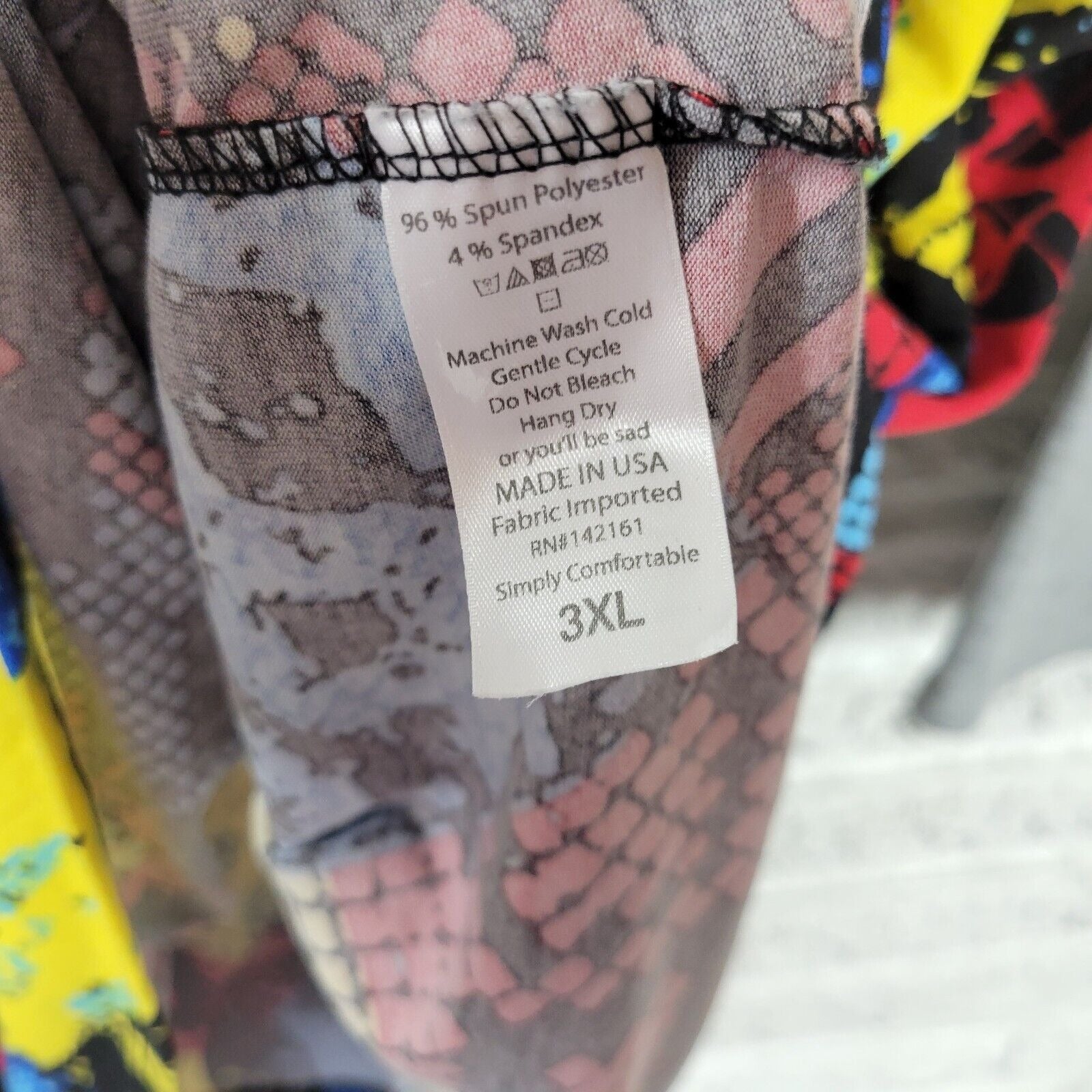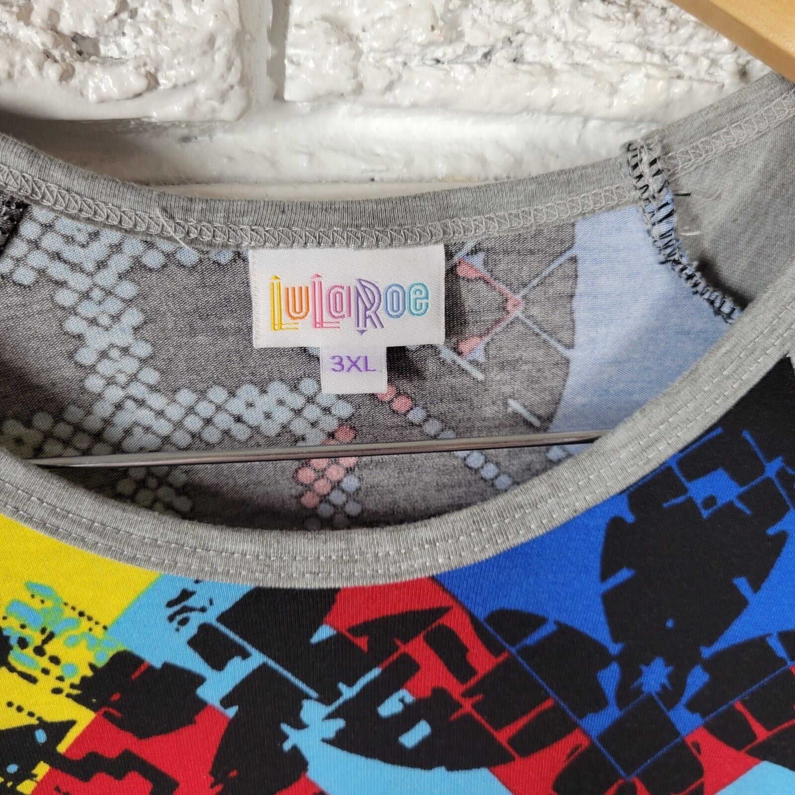 Lularoe Womens Top 3XL Plus Tee 3/4 Raglan Sleeve Blue Red Geometric Poly Blend
