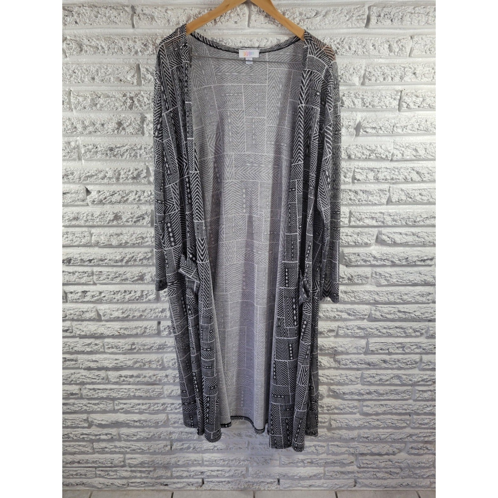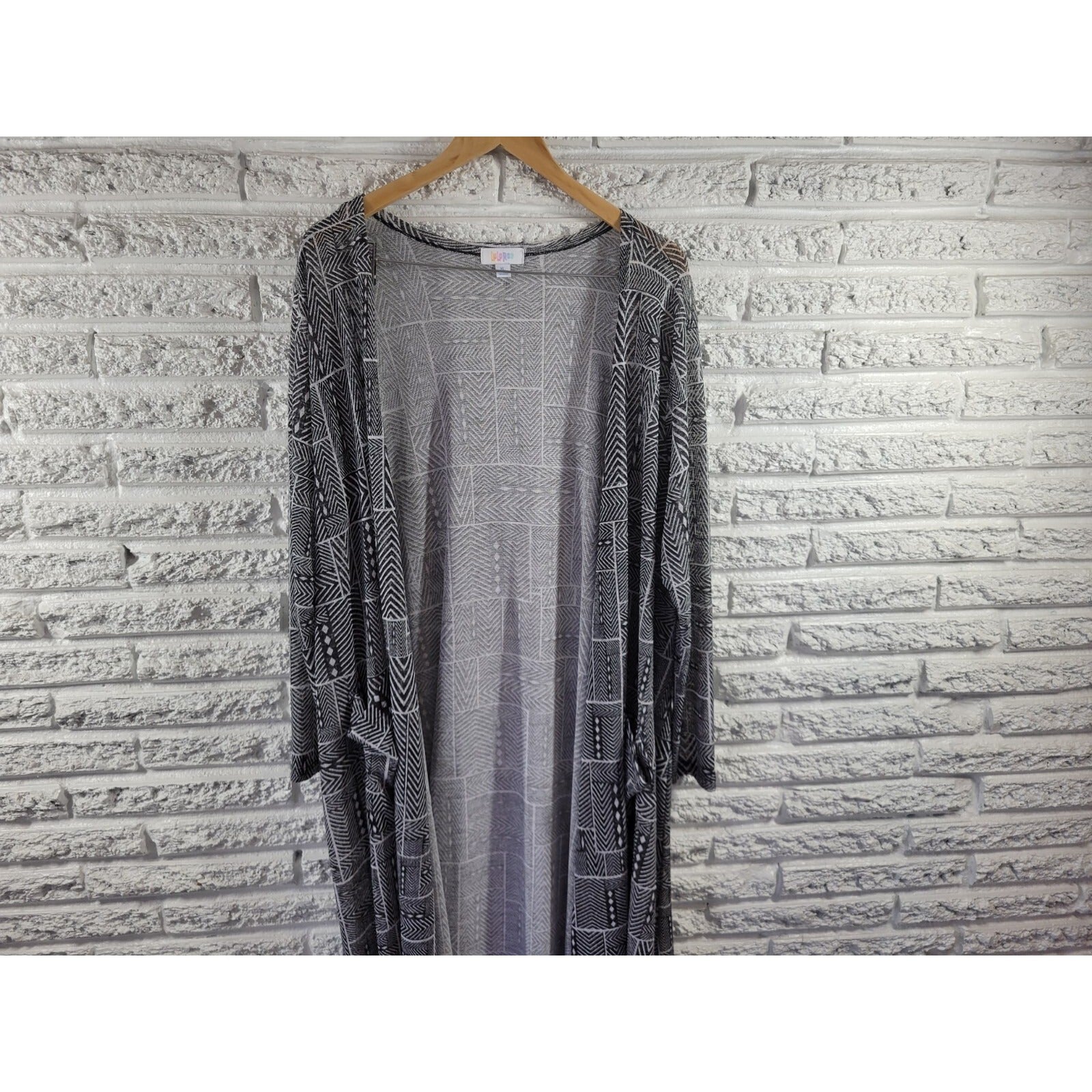 Elevate your wardrobe with this Lularoe Women's Top. The extra-large cardigan duster features an open front with an asymmetric mesh sheer design that adds a touch of sophistication to your casual outfit. With 3/4 sleeves and a pullover closure, this top is perfect for any occasion. Made of a polyester blend and machine washable, this black blouse is easy to care for and fits true to size. The stretchy fabric type makes it comfortable to wear all seasons. This basic style top is suitable for women of all sizes and is perfect for those who prefer regular fit clothing.