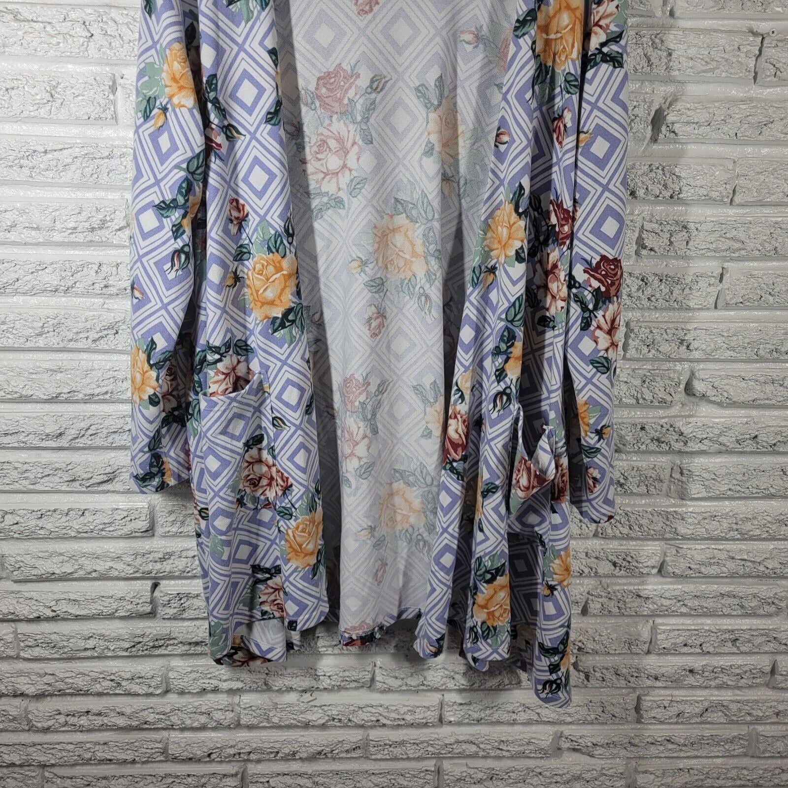 Lularoe Womens Top Extra Large Cardigan Open Blue Gold Floral Pockets Poly Blend