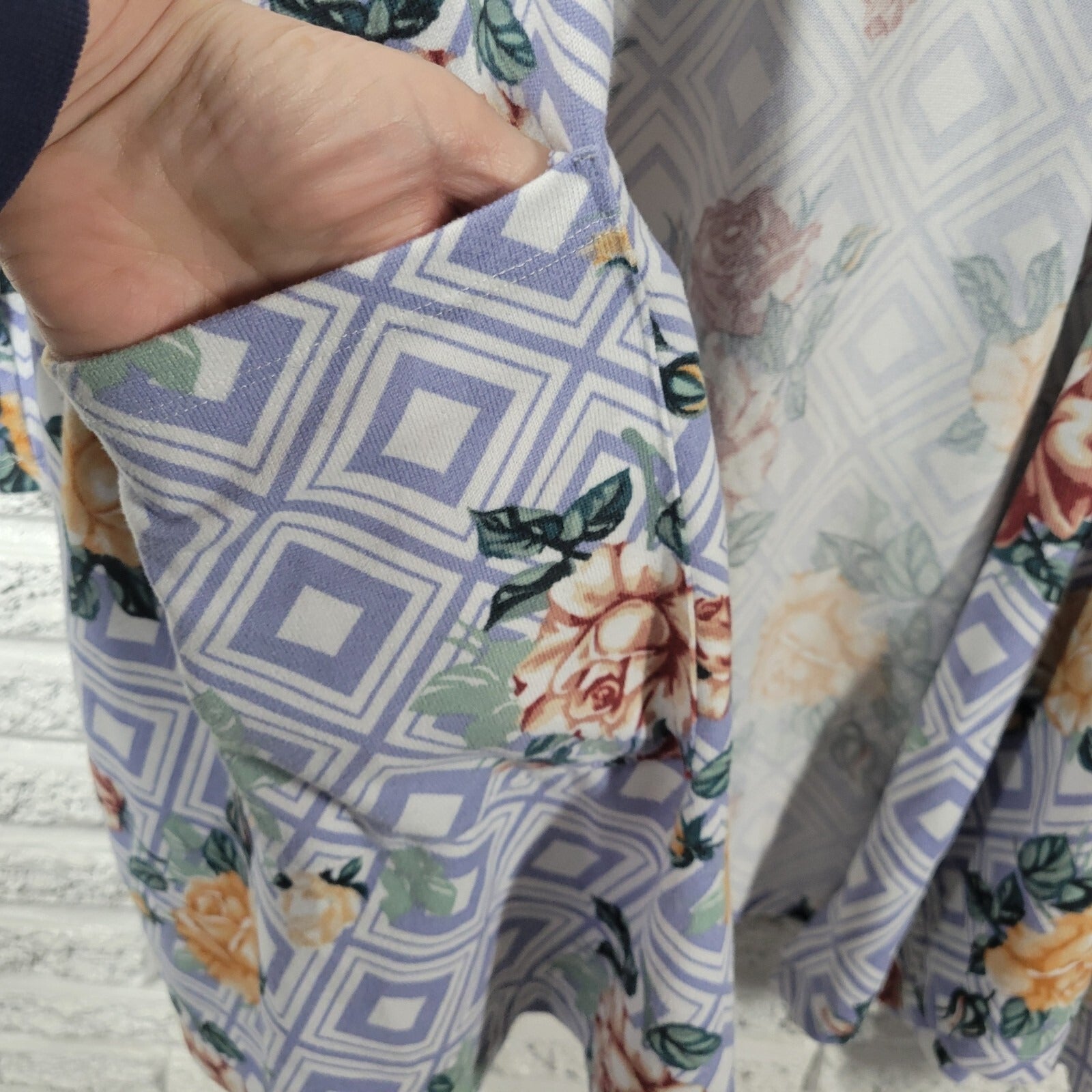 Embrace the comfort and versatility of the Lularoe Women's Top, a perfect blend of style and practicality for your wardrobe. This extra-large cardigan features a lovely blue and gold floral pattern, ideal for adding a touch of elegance to your casual outings or travel adventures. The 3/4 casual sleeves and pullover closure ensure an easy, relaxed fit that's just right for any season – from the warm breezes of summer to the crisp air of fall. Crafted from a soft polyester blend, this blouse is designed with convenience in mind. It's machine washable, making it a hassle-free addition to your laundry routine. The top also boasts features like stretch fabric, all-season suitability, and the convenience of pockets, all complemented by a regular fit that flatters without compromising on comfort. Whether you're dressing up or down, this Lularoe piece is sure to become a cherished go-to in your closet.