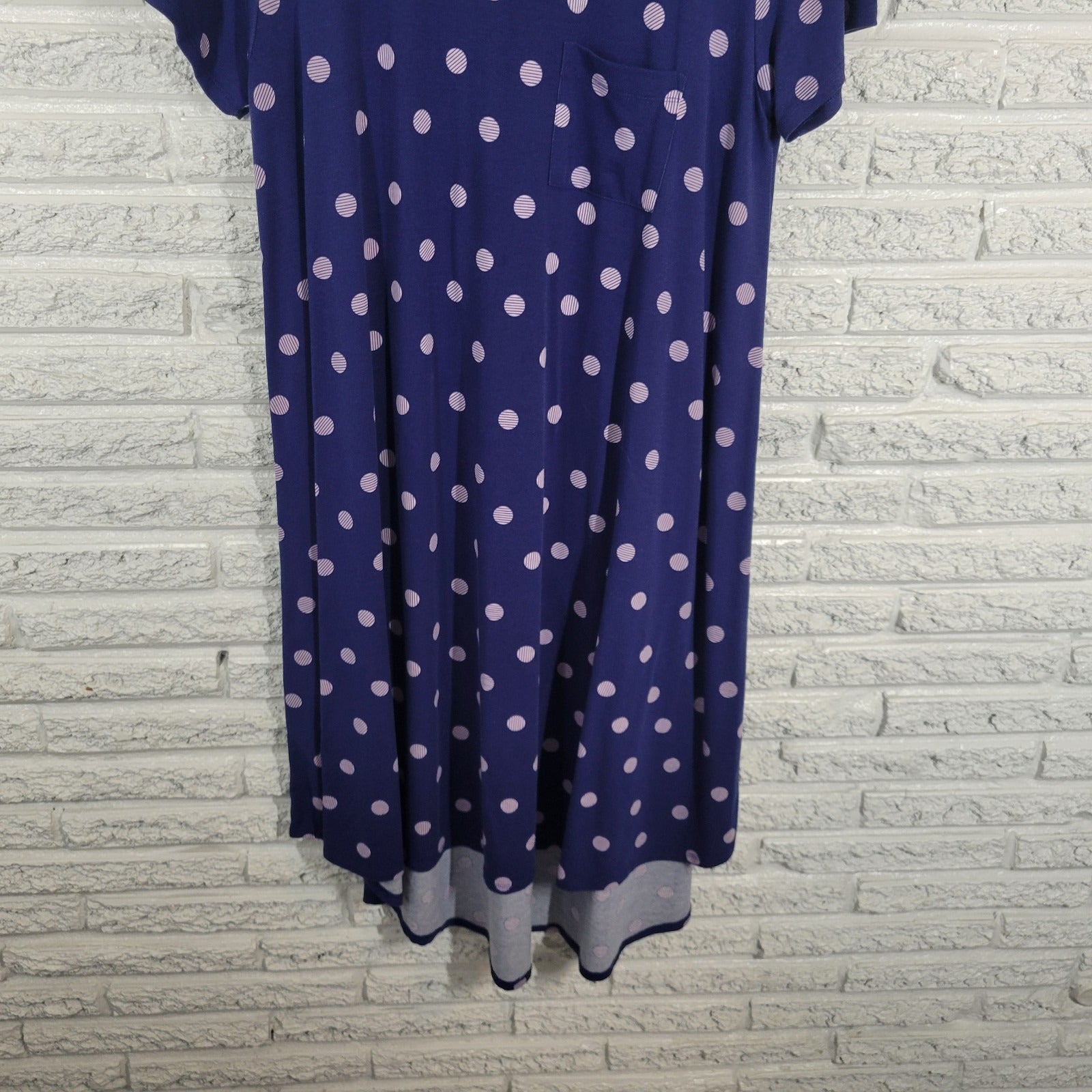 LuLaRoe Women's XL Blue Polka Dot High Low Hem T-Shirt Dress Round Neck