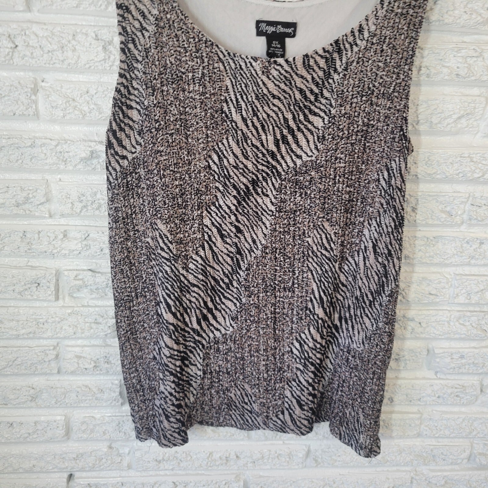 Maggie Barnes Womens Top 0X 14 16 Tank Black Tan Animal Print Lightweight Knit