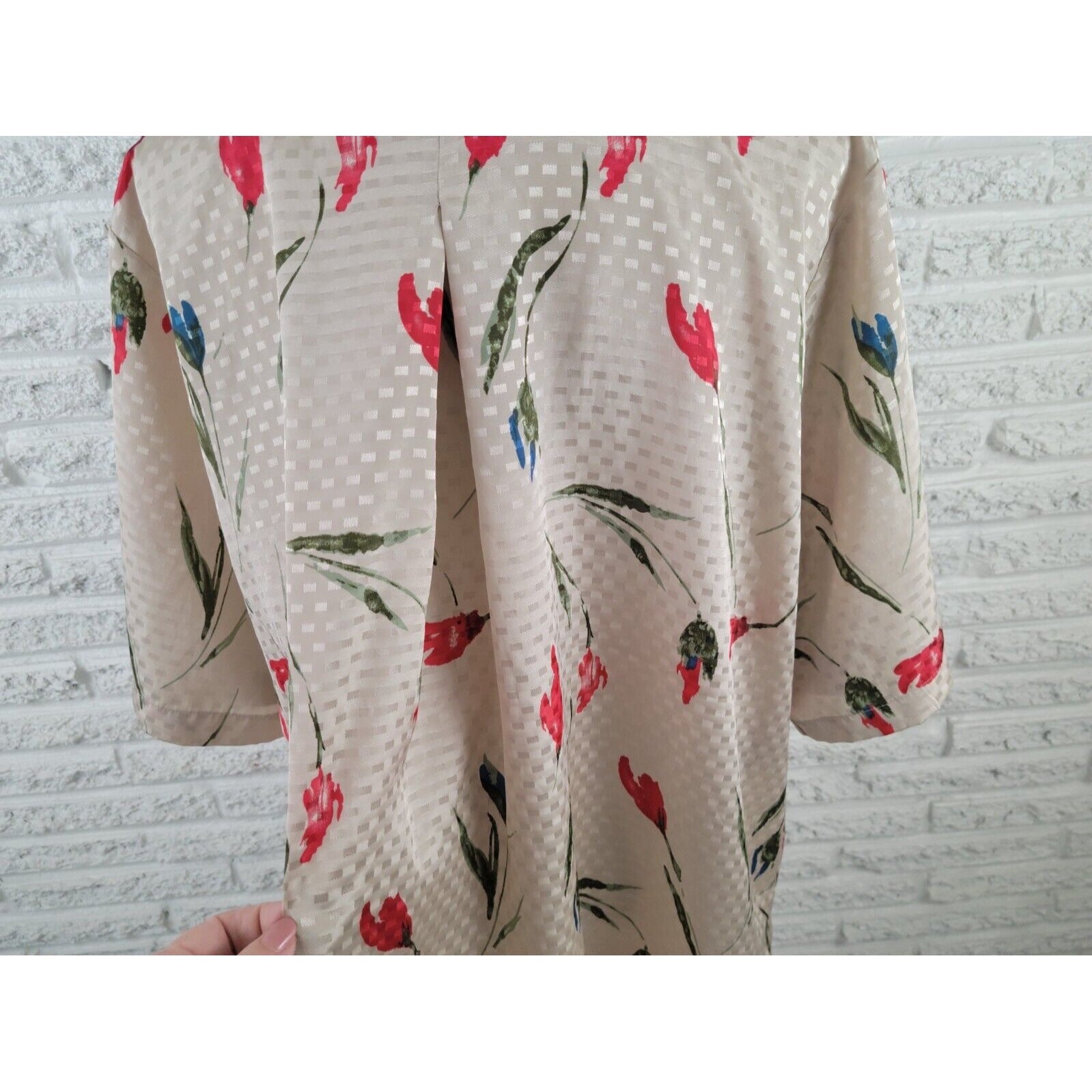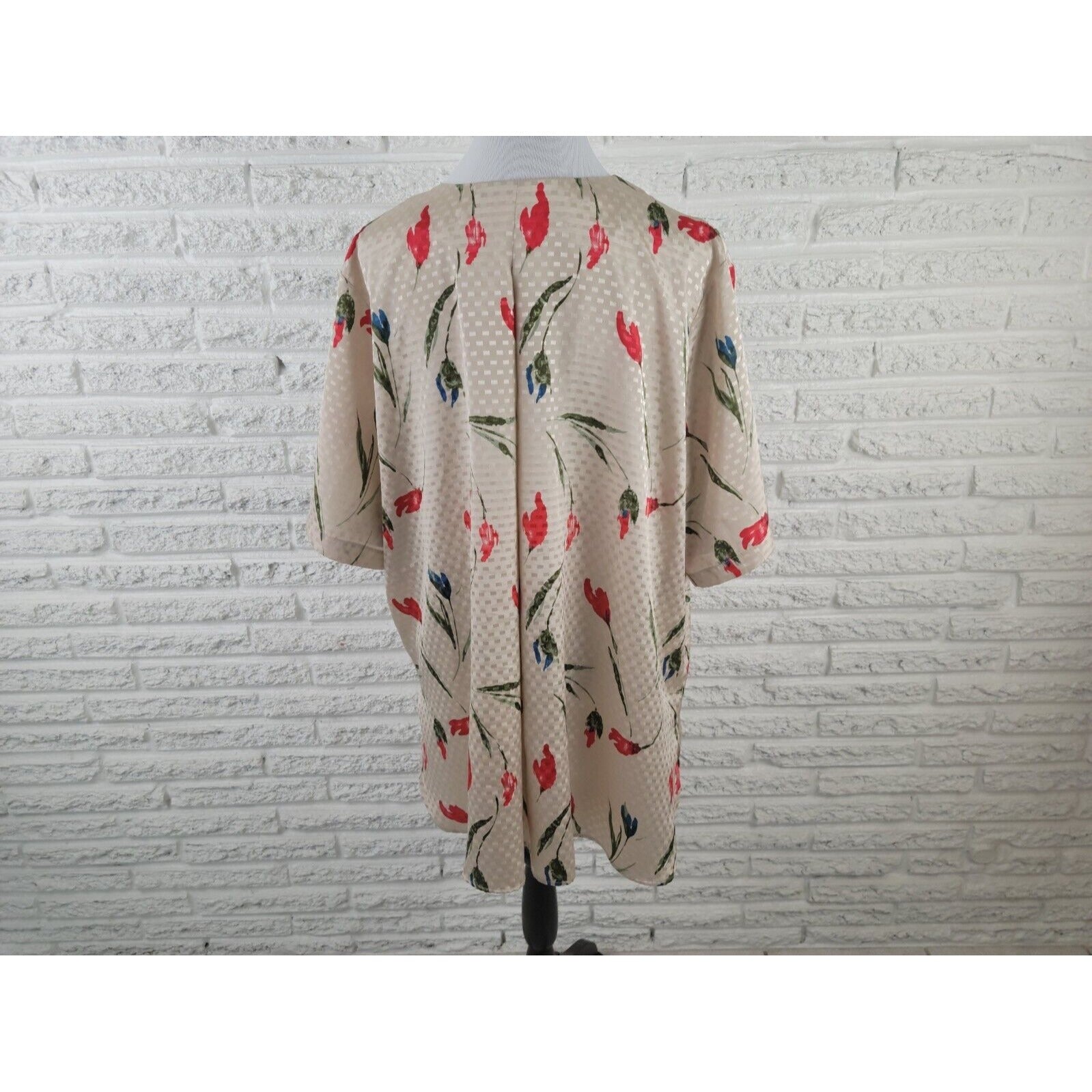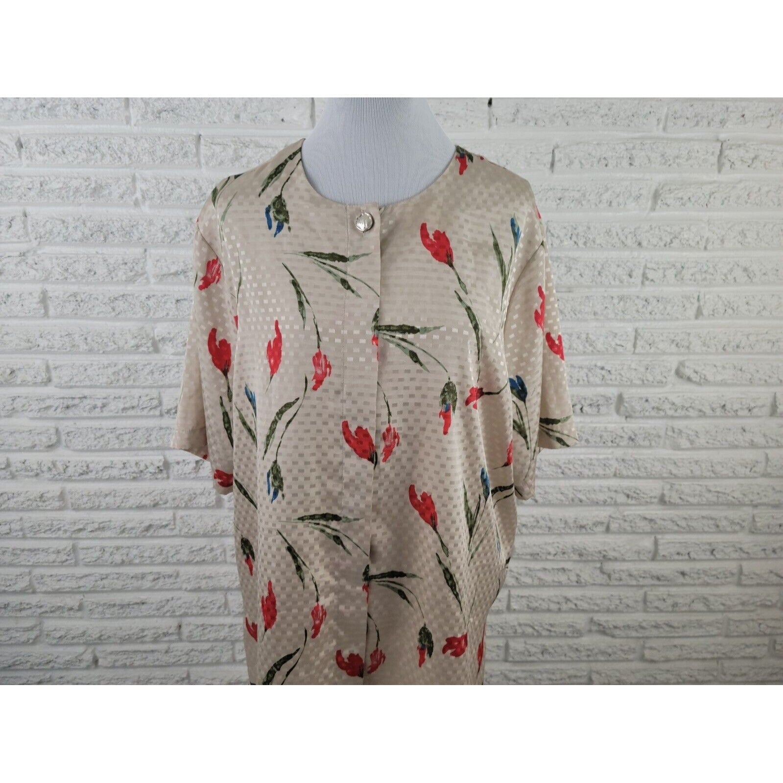 Maggie Barnes Womens Top 22W Button Up Beige Red Floral Career Casual Polyester