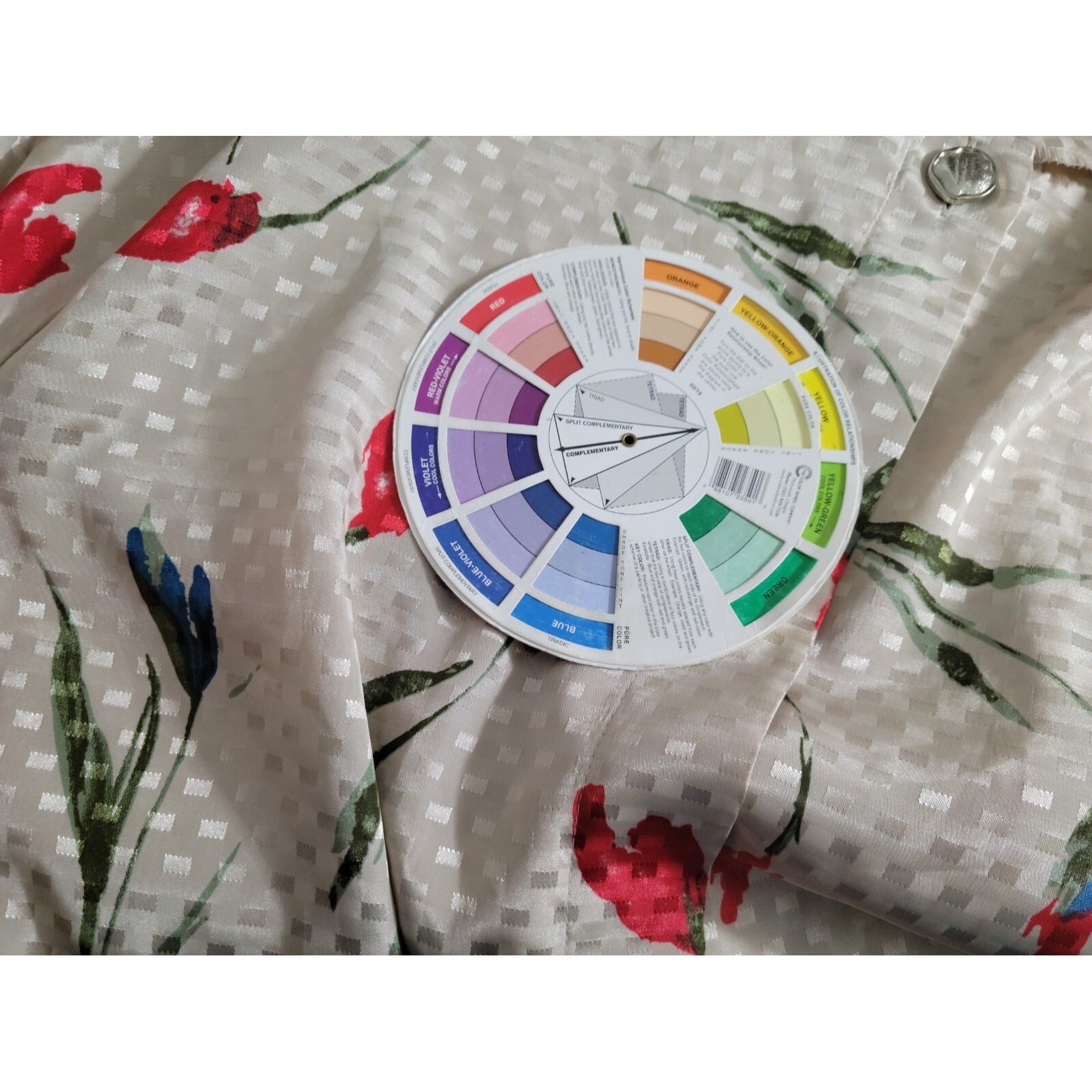 Maggie Barnes Womens Top 22W Plus Button Up Beige Red Floral Career Polyester