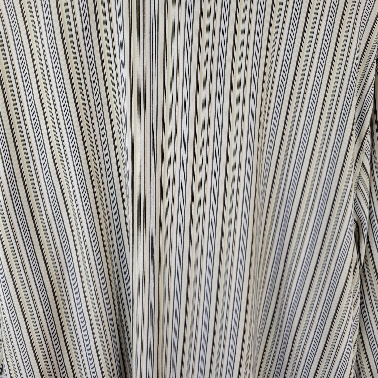 The Maggie Barnes Women's Top in size 3X Plus features a stylish green striped design, 3/4 slit sleeves, and a collared neckline with a button closure. Made from a comfortable polyester blend, this button-up top is suitable for various occasions including travel, casual outings, and business meetings. With a regular fit and all-season appeal, this top is a versatile addition to any woman's wardrobe, offering both style and practicality. This top is machine washable for easy care.