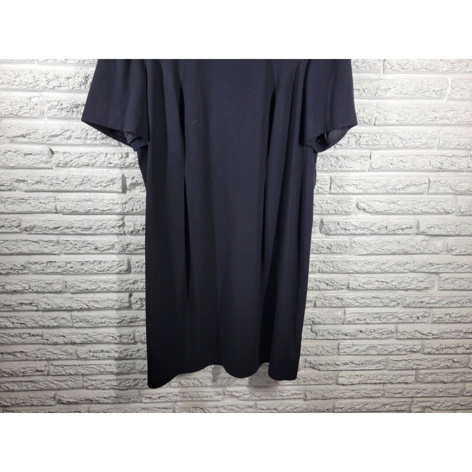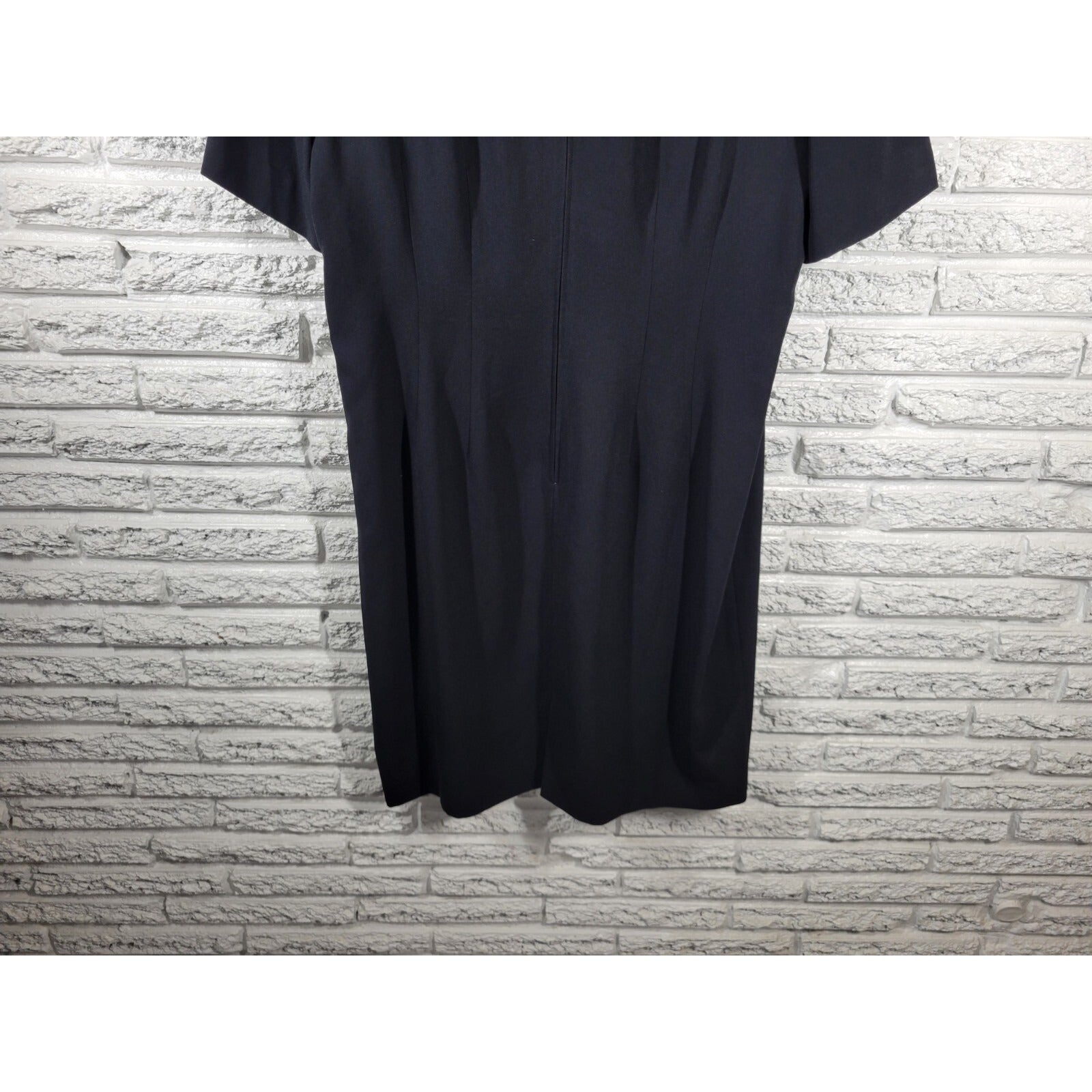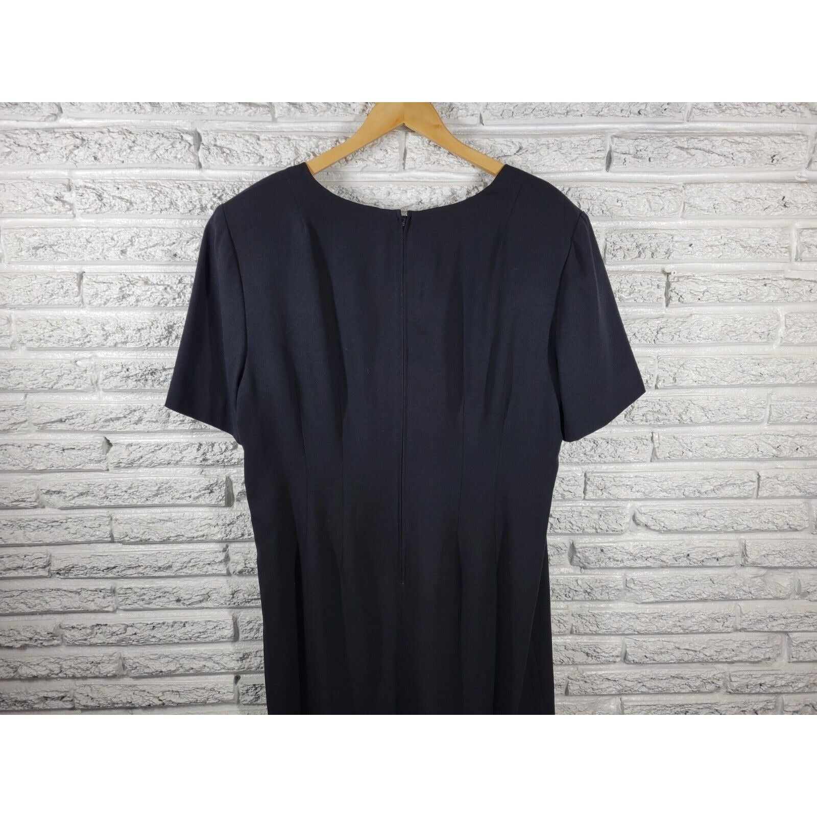 This Maggy London dress is a stylish and versatile piece that can be worn for both casual and business occasions. The dress features a solid black color, short sleeves, a round neckline, and a zip closure. It is made of a polyester blend material and is lined for added comfort. The knee-length dress is perfect for any season, whether it be winter, summer, fall, or spring. The dress is a size 20, plus size type, and is suitable for women. The garment care requires dry cleaning only.