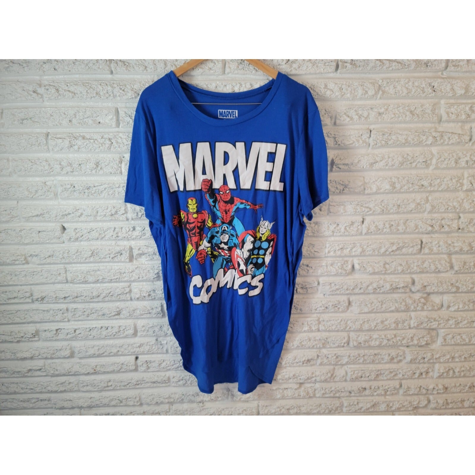 Marvel Unisex Adult Shirt 3X Tee Crew Blue Short Sleeve Superheroes Poly Blend