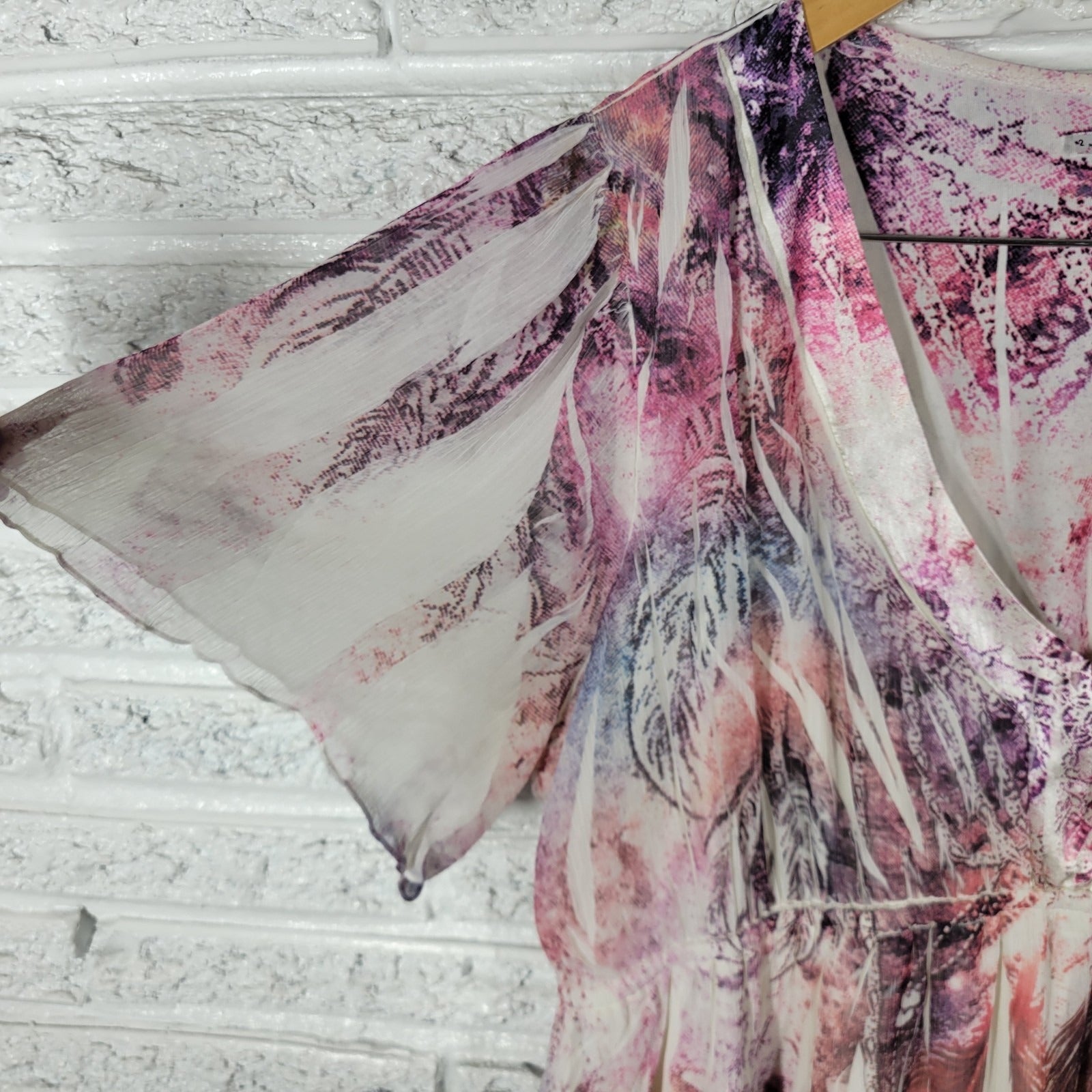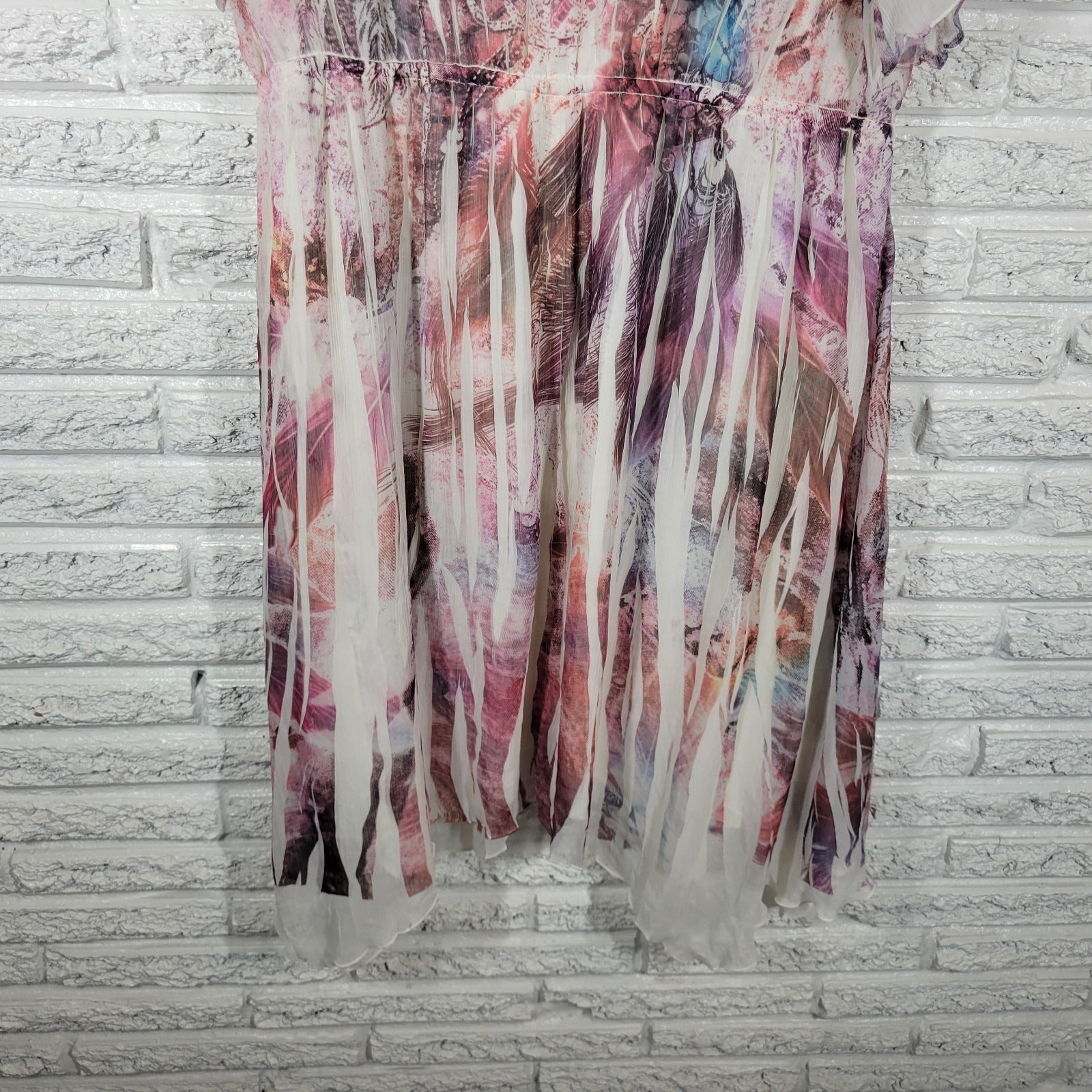 Maurices Women Dress 2 2X Plus Fit Flare Flowy Purple Brown Watercolor Laser Cut