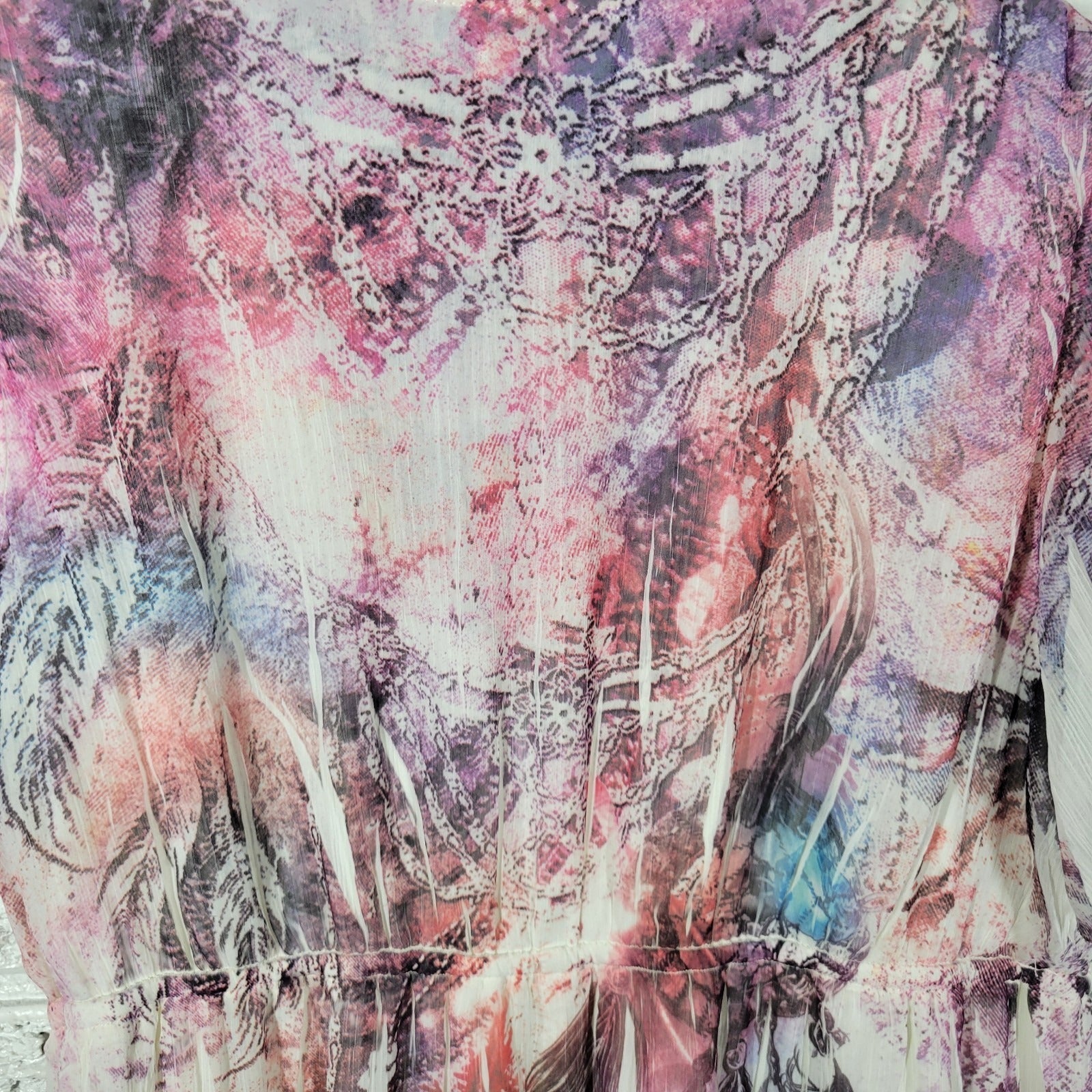 The Maurices Women's Dress in size 2X Plus is a stylish and versatile option for any occasion. This fit and flare, knee-length dress features a flattering V-neckline and short sleeves, making it perfect for travel or casual wear. The watercolor laser cut design adds a colorful pop to your wardrobe, while the polyester material ensures easy care with machine washable instructions. Whether you're heading to the beach or running a quick errand, this comfortable and stretchy dress is a must-have for your closet.