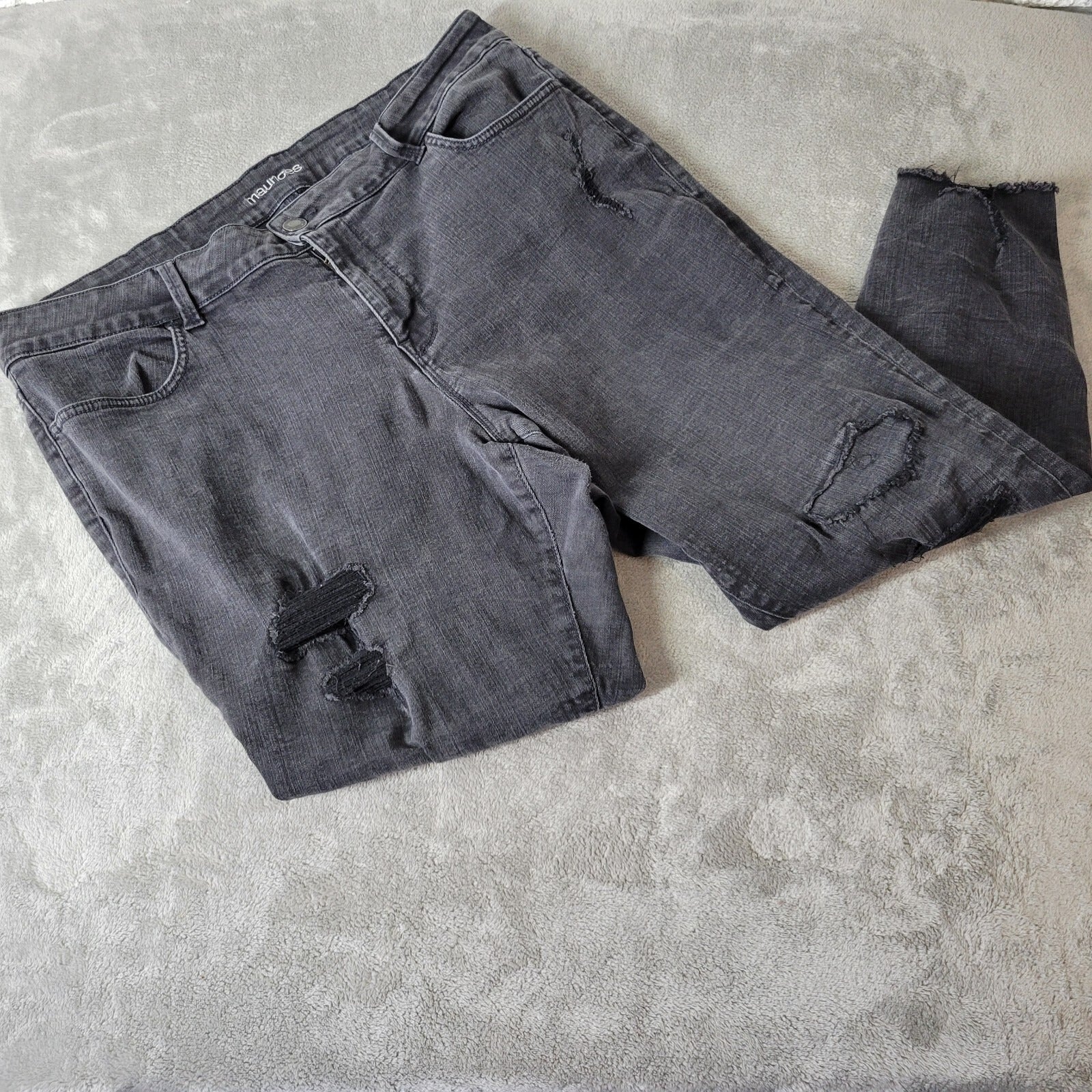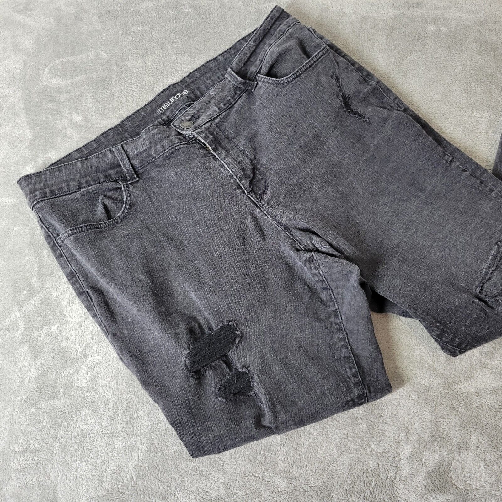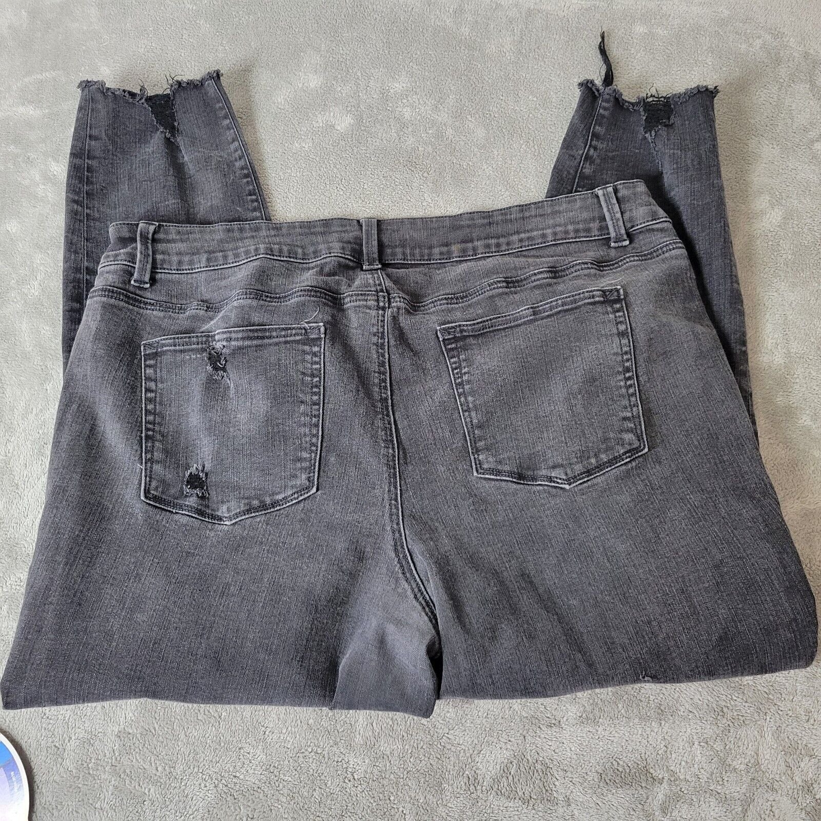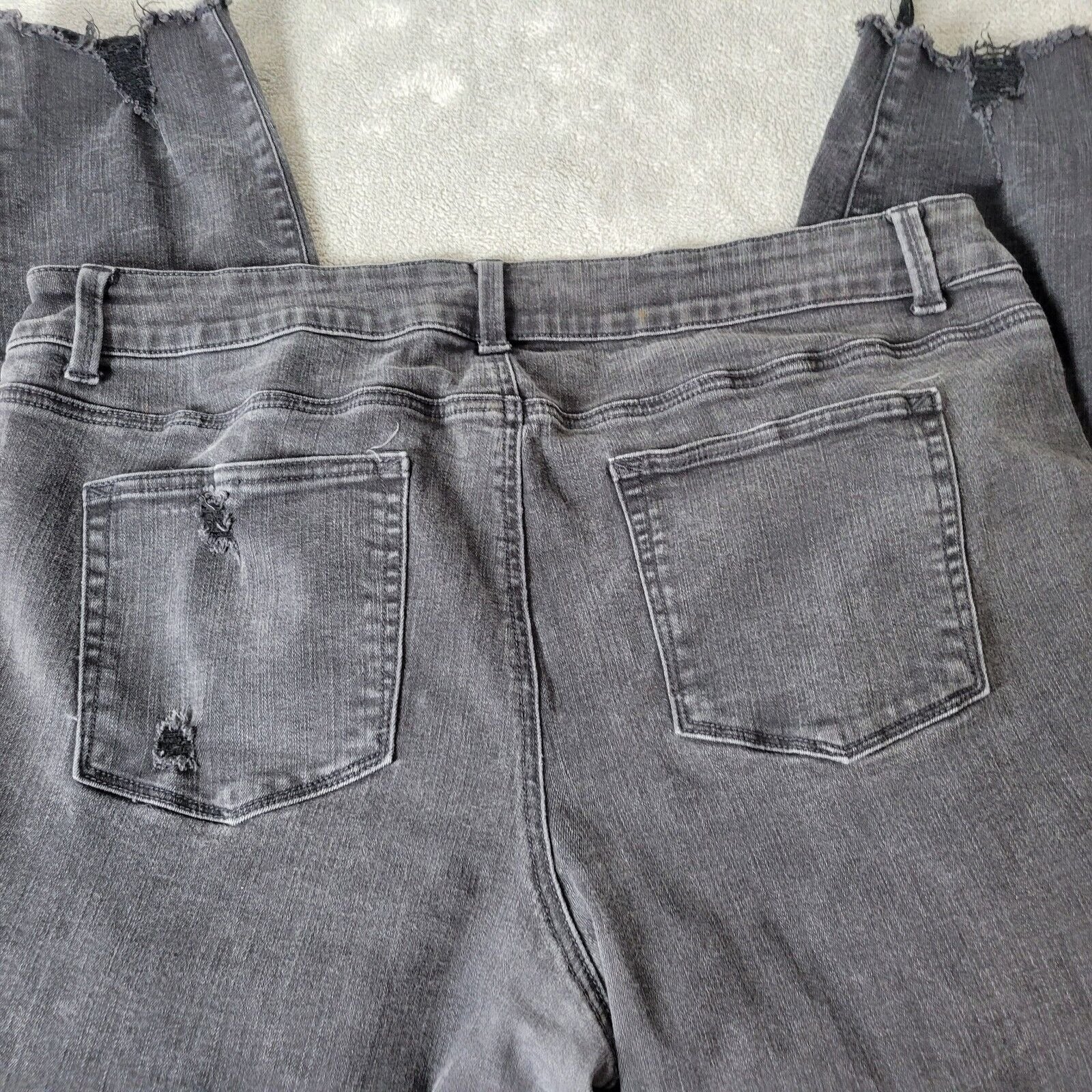 Maurices Women Jeans 22W Plus Cropped Black Denim Distressed Raw Hem Zip Fly