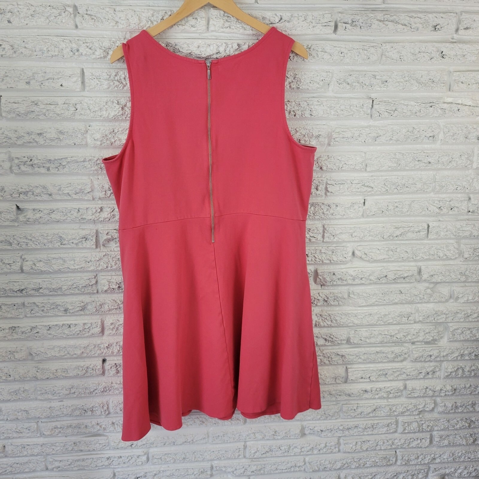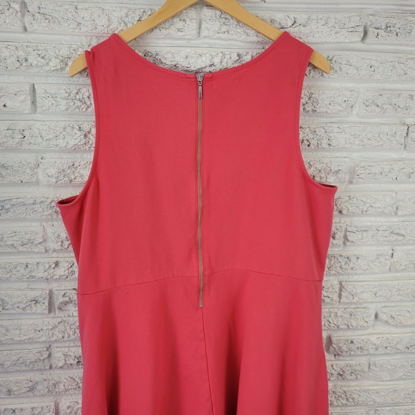 This beautiful coral pink dress from Maurices is perfect for any casual or travel occasion. The dress is made of a comfortable and stretchy nylon and rayon material, making it machine washable for easy care. It features a round neckline, sleeveless design, and a zip closure.  The dress is a size 3X and has a regular fit and flare style, with short pockets that add a touch of convenience. The dress is suitable for all seasons, including winter, summer, fall, and spring, and is perfect for any woman who wants to look stylish and comfortable. This dress is a great addition to any wardrobe and is perfect for any woman who loves fashion.