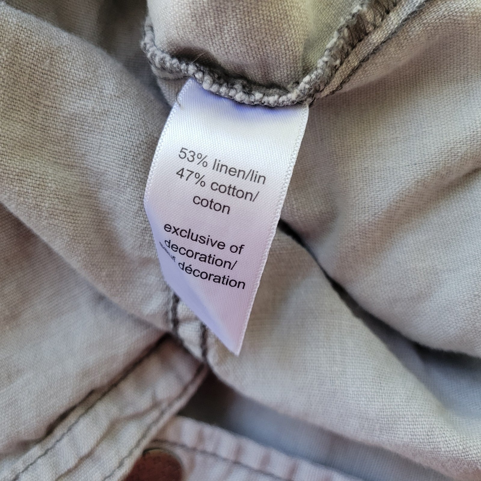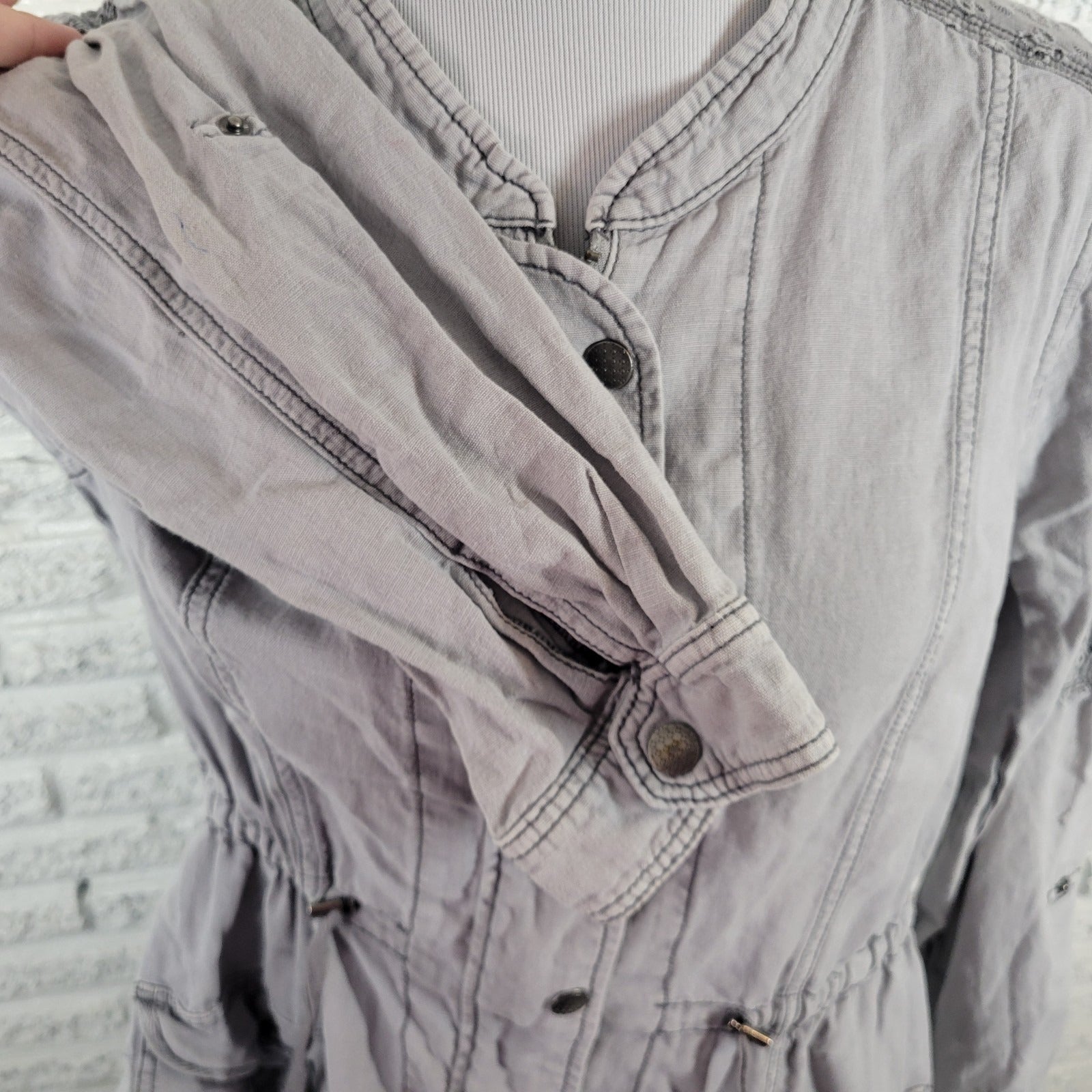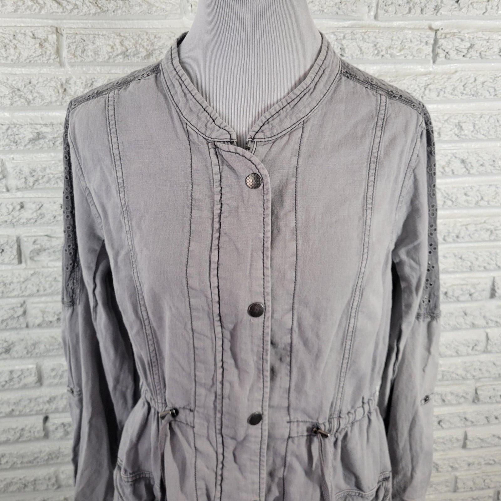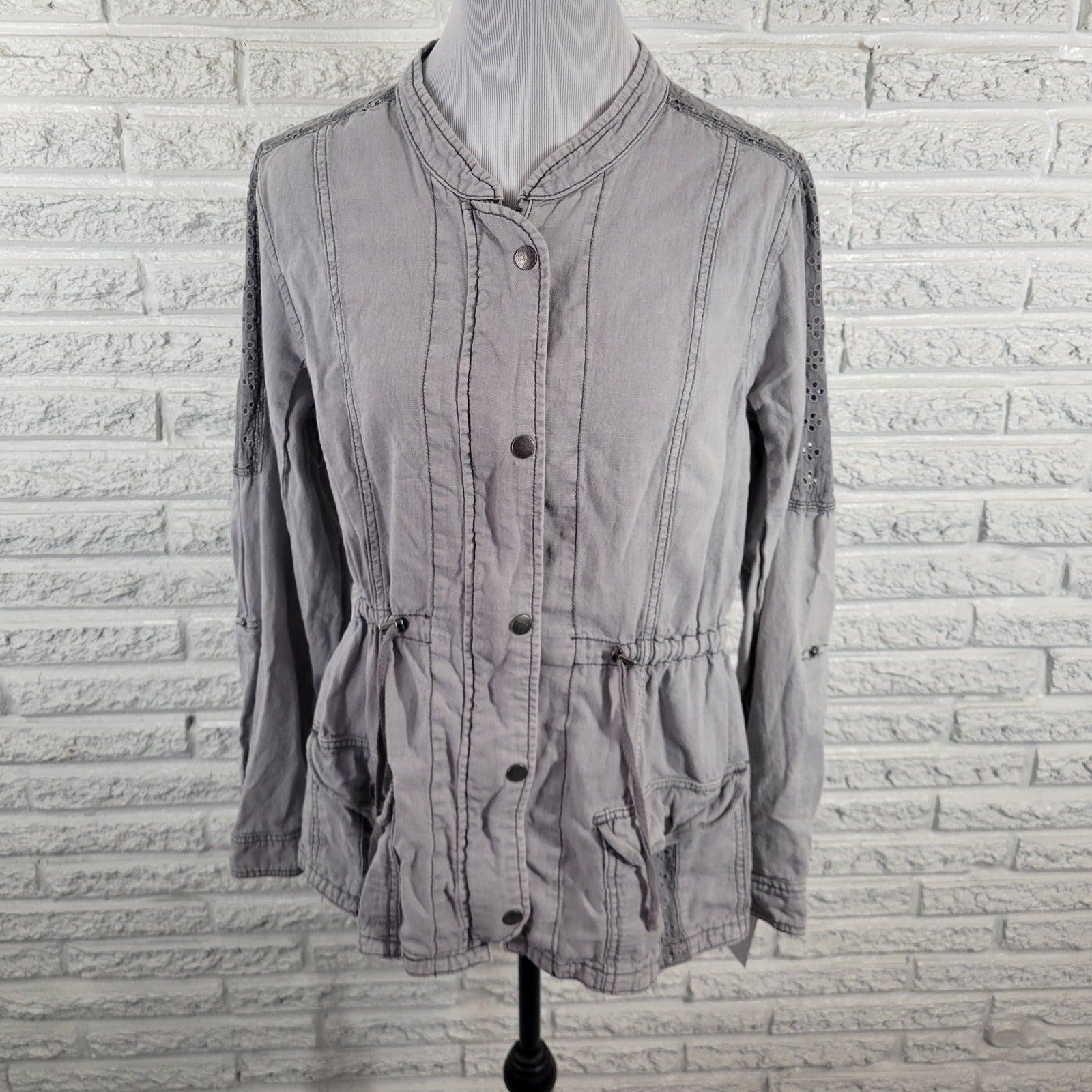 Maurices Womens Jacket XL Gray Linen Cotton Eyelet Zip Snap Up Casual Pockets