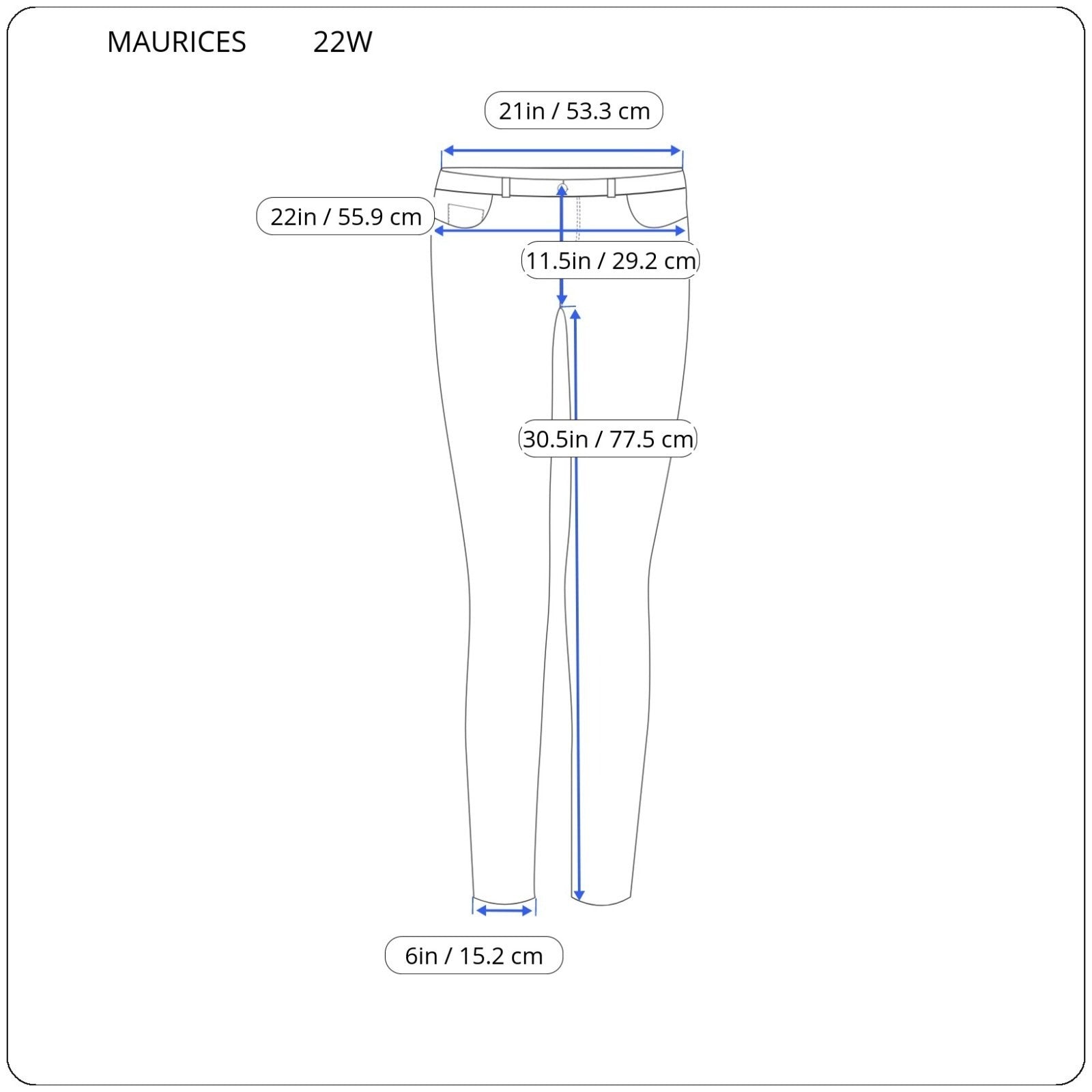 The Maurices Women's M Jeans in size 22W are a comfortable and stylish choice for any season. These straight leg mid rise jeans in dark blue denim feature a zip fly closure and are made from a cotton blend fabric with added stretch for comfort. The regular fit and tapered style are flattering, while the slash pockets and elastic waist provide both style and functionality. Machine washable for easy care, these plus size jeans are a versatile addition to any woman's wardrobe.
