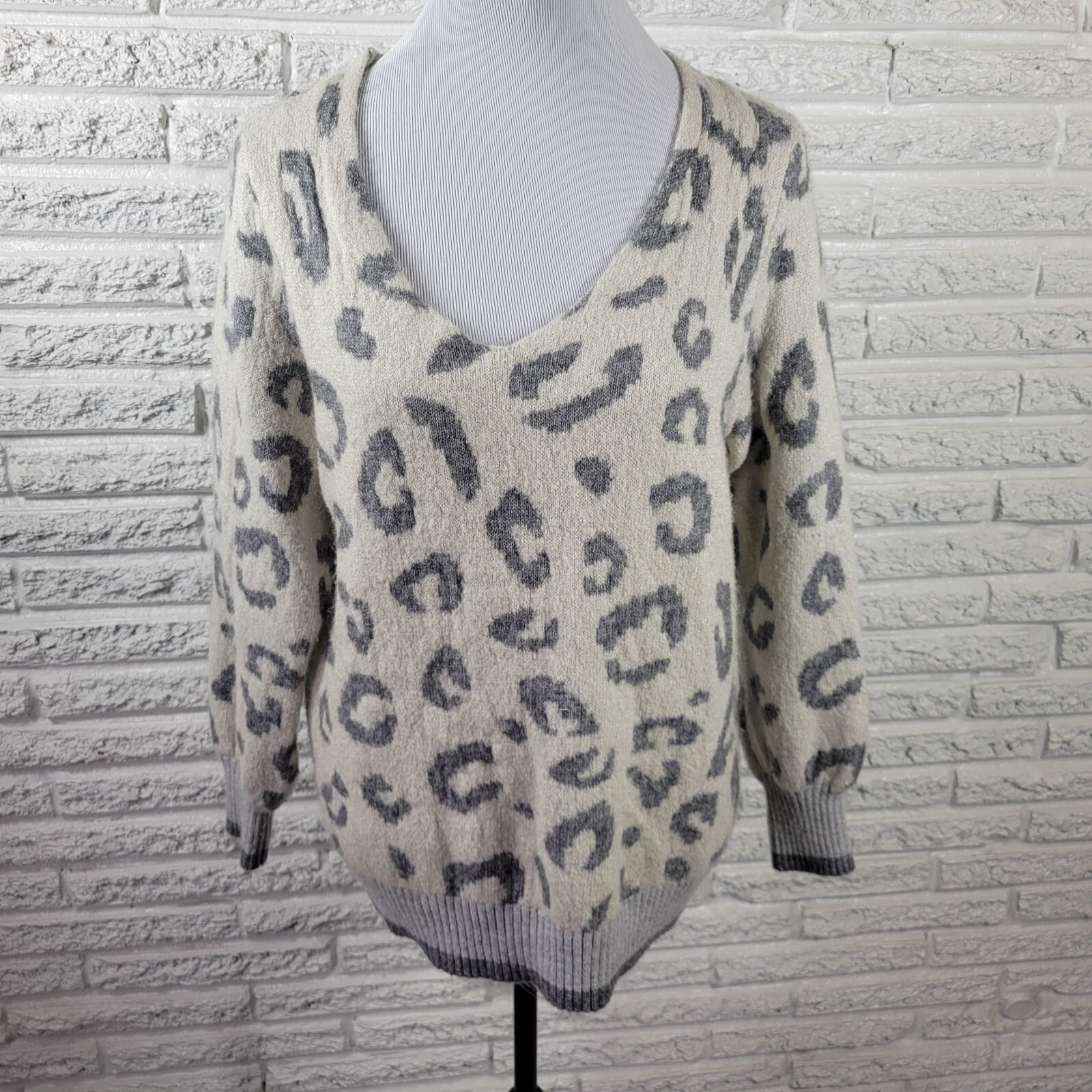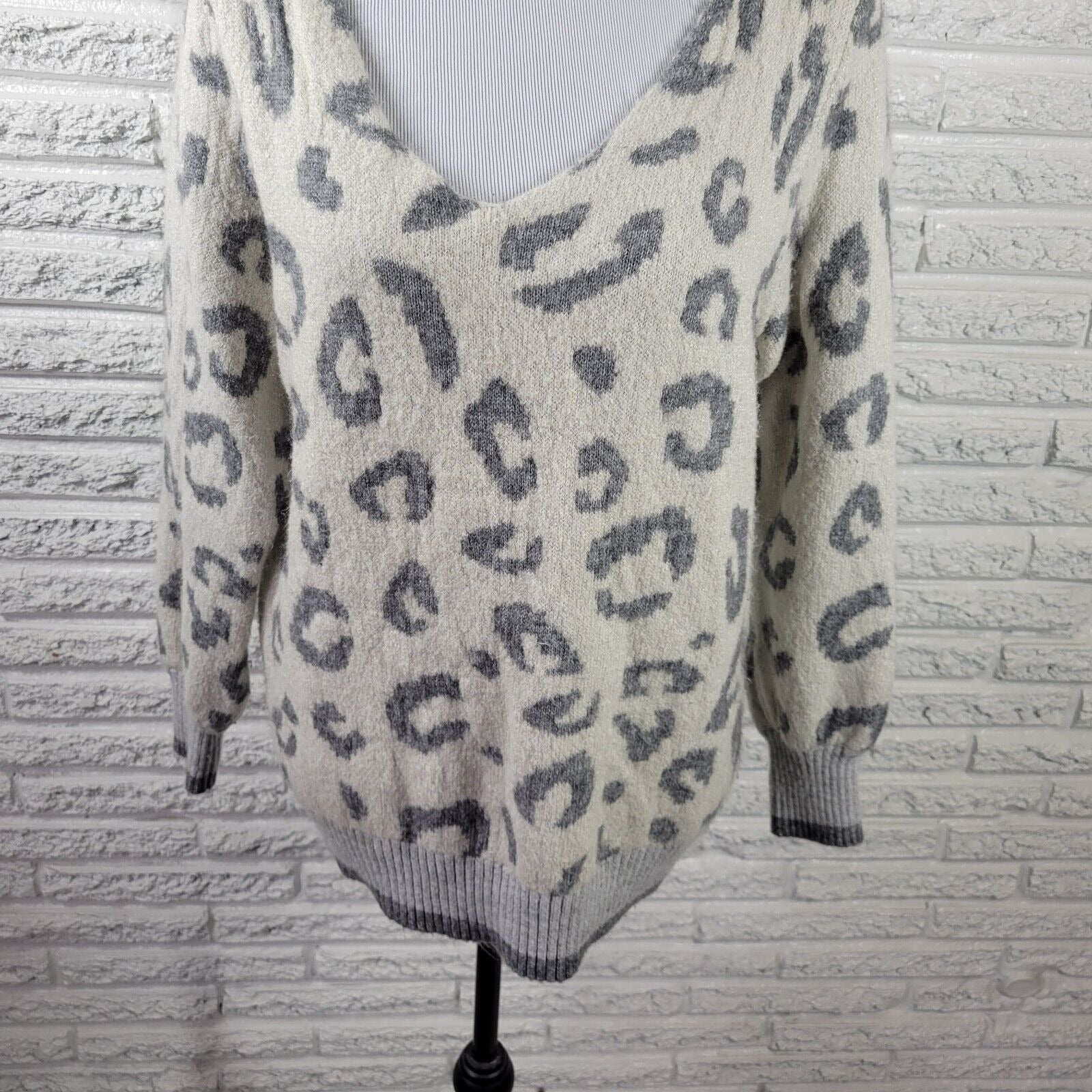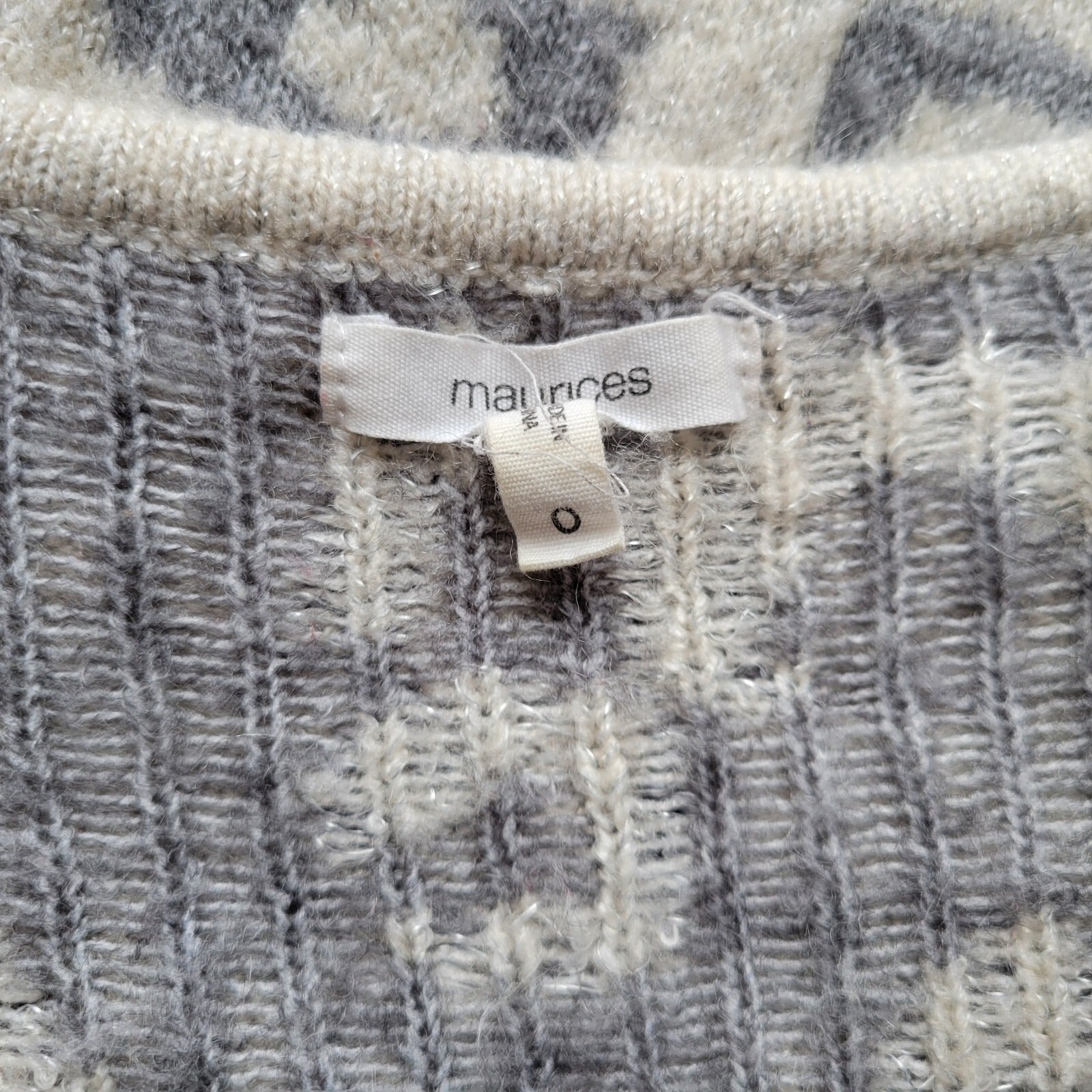 Maurices Womens Sweater 0 0X Plus Long Sleeve Gray Animal Print Soft Lightweight