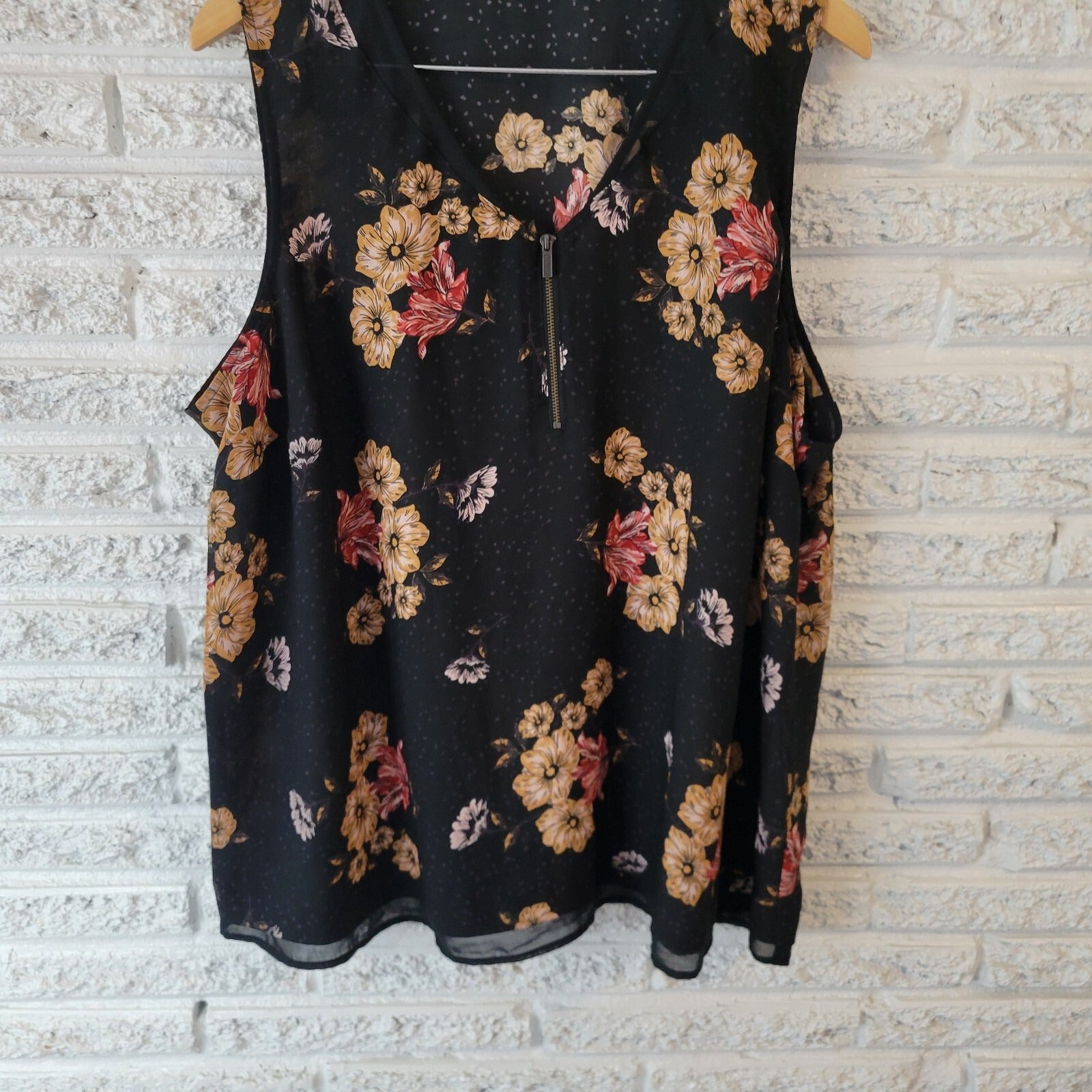 Maurices Womens Top 0 0X Plus Sleeveless Flowy Black Floral Sheer Lightweight