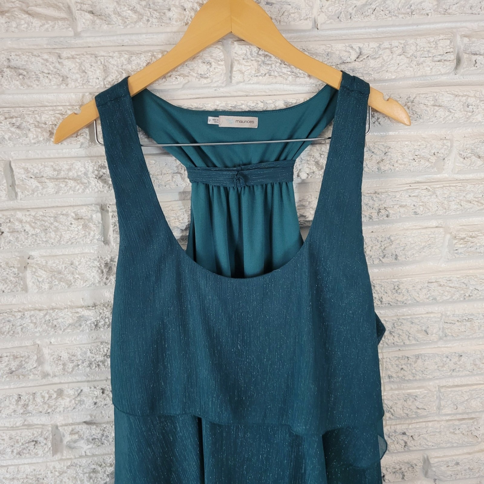 Maurices Womens Top 2 2X Plus Tank Tunic Green Sparkle Metallic Party Racerback