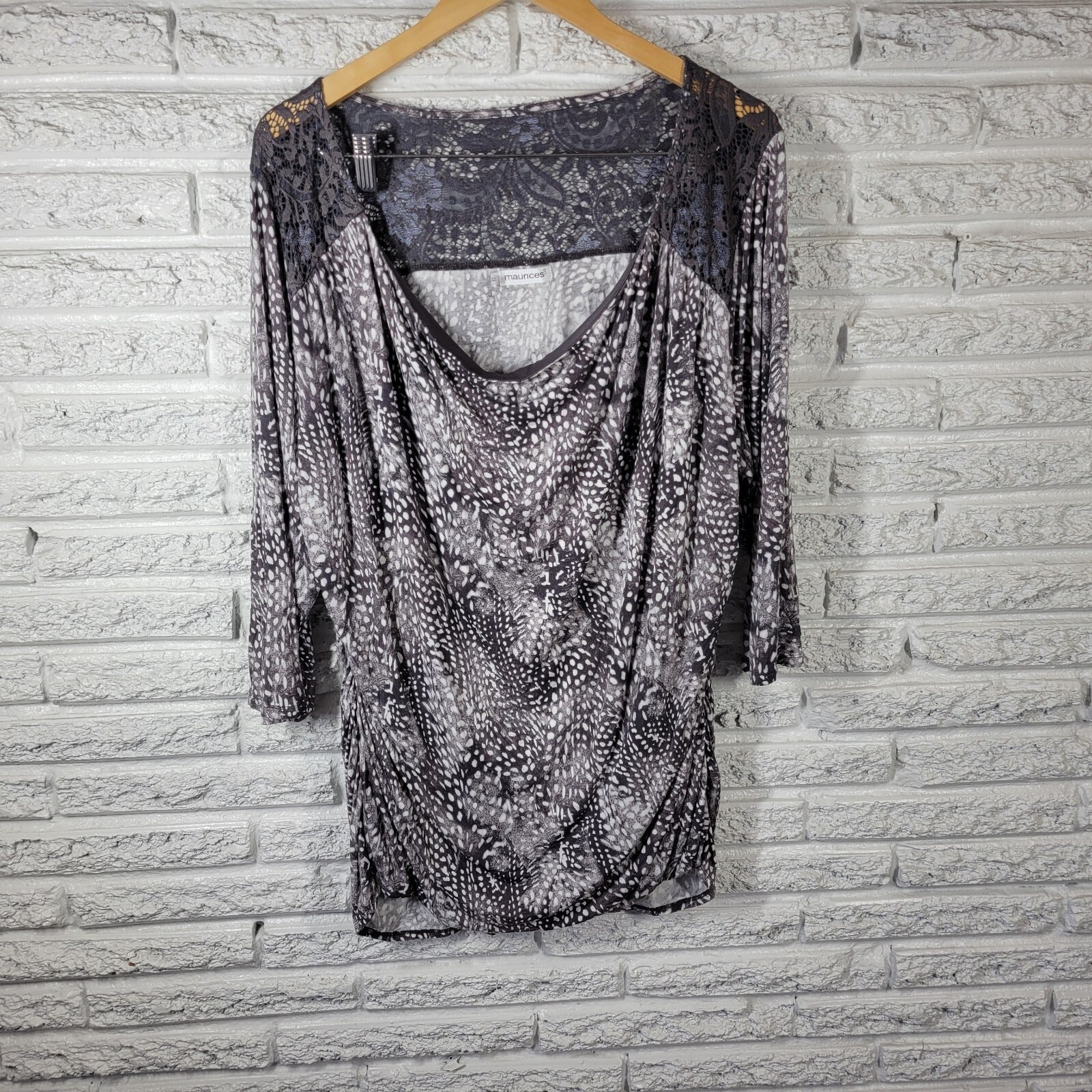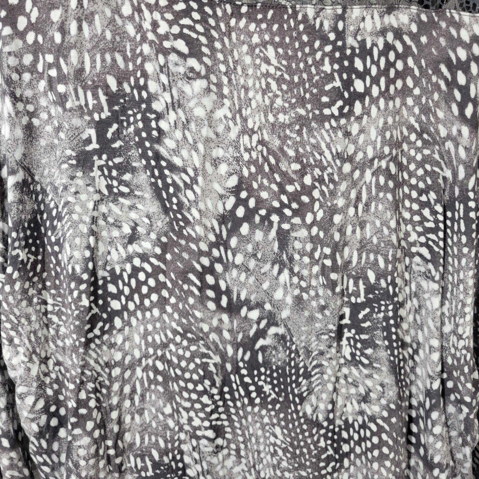 Maurices Womens Top 3 3X Short Sleeve Gray Animal Print Lightweight Lace Back