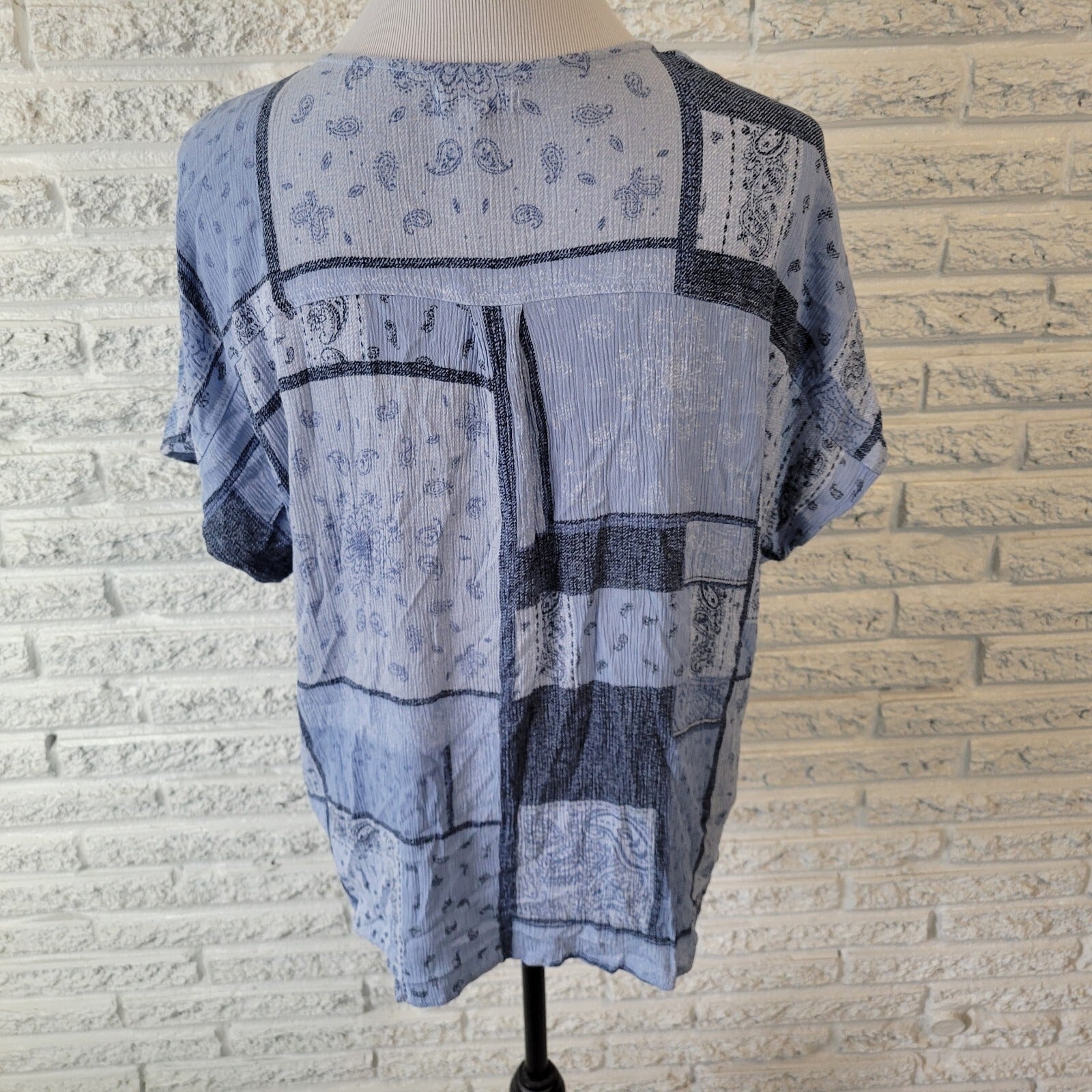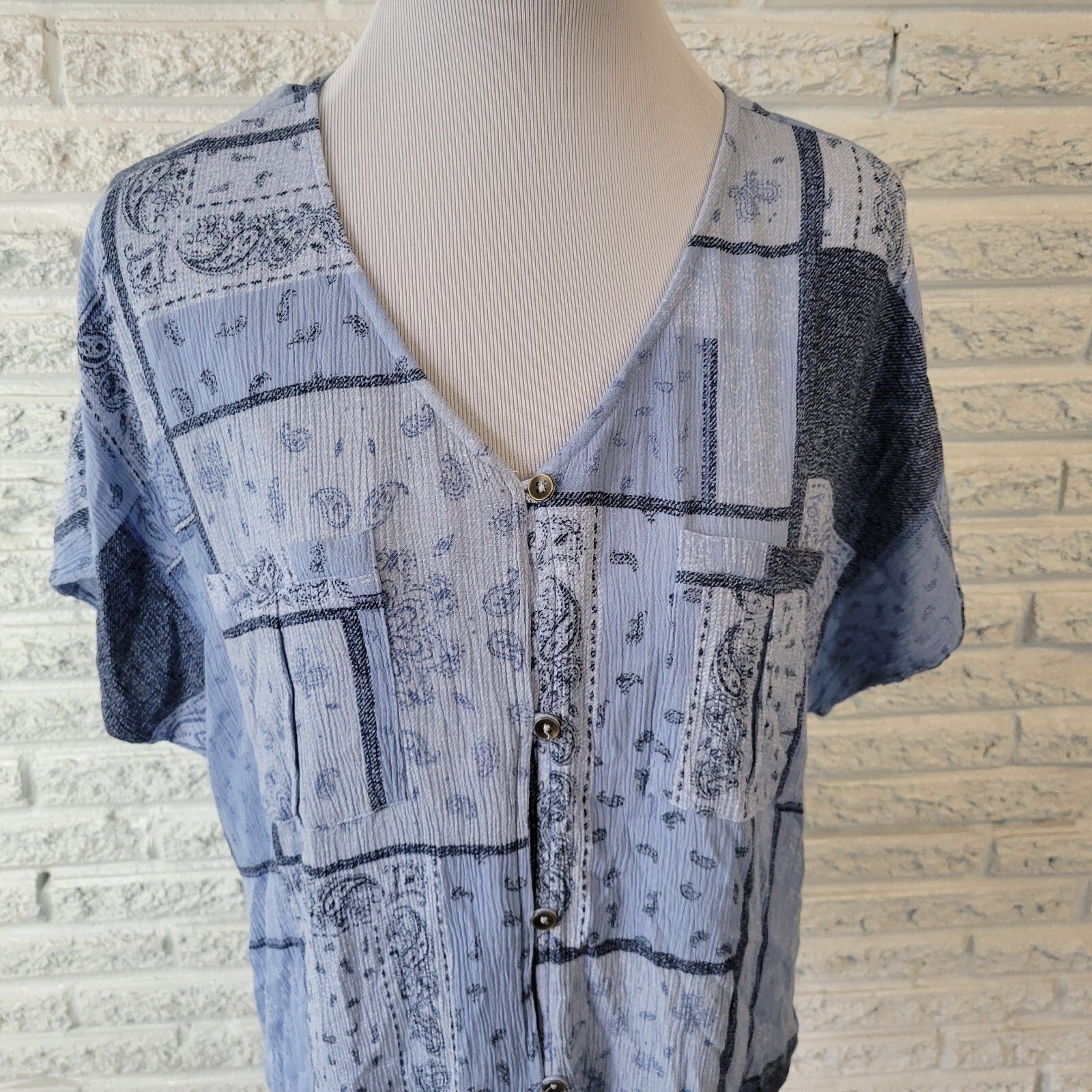 Maurices Womens Top XXL Plus Cap Sleeve Blue Paisley Casual Lightweight Rayn