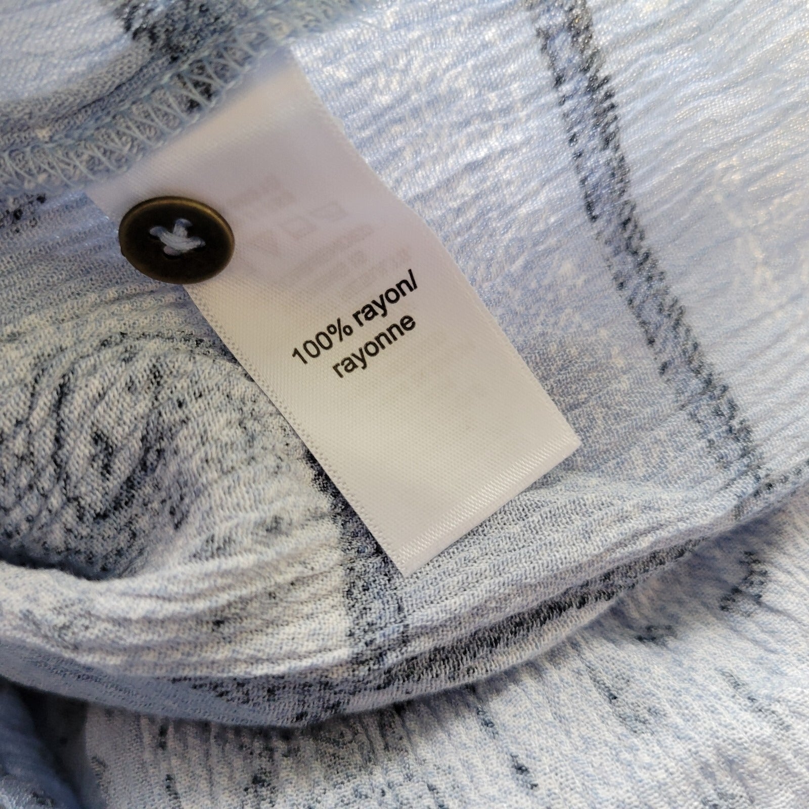 The Maurices Women's Top in XXL Plus size is a lightweight blue paisley top made of rayon, perfect for casual occasions or travel. This cap-sleeve top features a V-neckline with a button closure, making it easy to style for all seasons. The regular fit ensures comfort, while the stretch material allows for flexibility in movement. With its basic style and all-season appeal, this top is a versatile addition to any woman's wardrobe.
