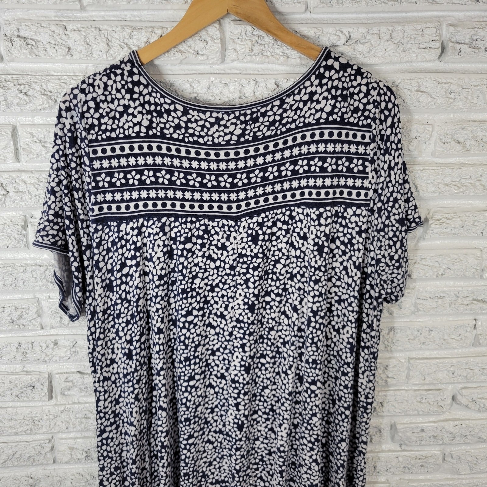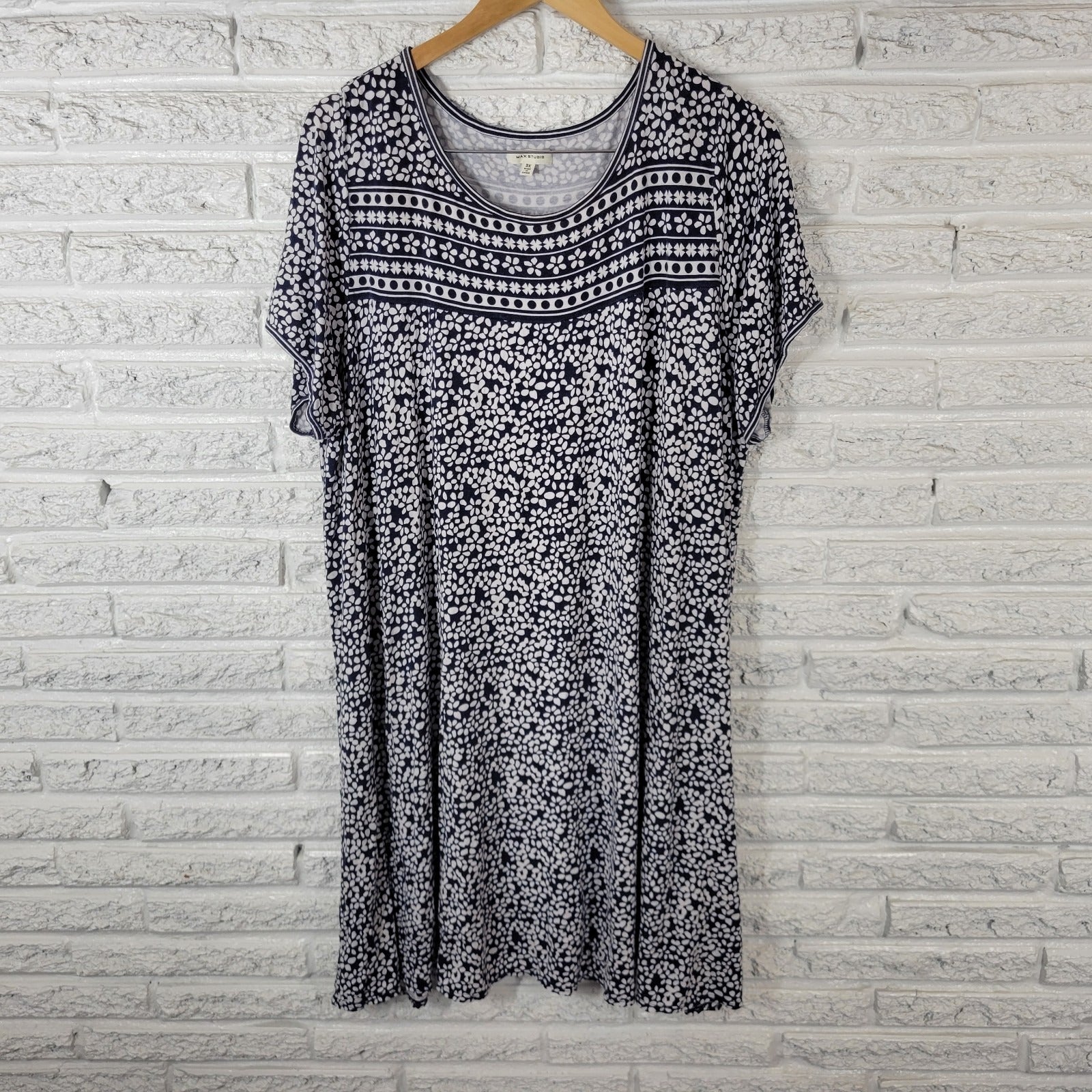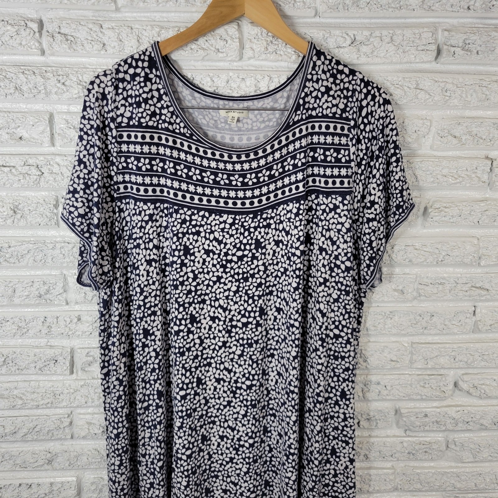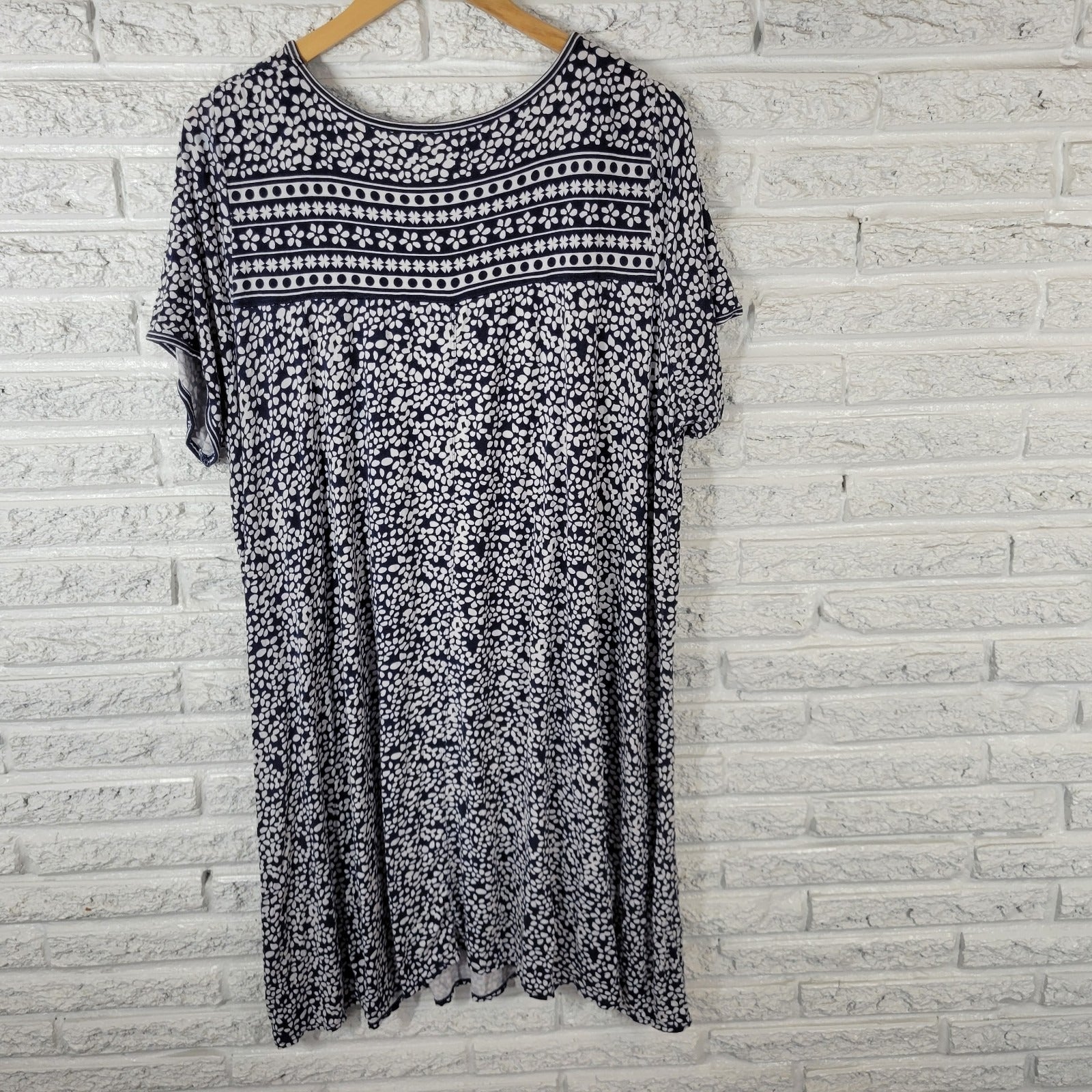 Max Studio Womens Dress 3X Plus Mini Short Sleeve Blue Floral Rayon Spandex