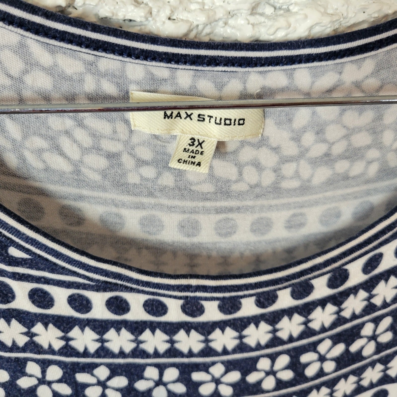 The Max Studio Women's Dress in size 3X Plus is a stylish mini dress in a blue/white floral pattern, made from a blend of spandex and rayon. It features short sleeves and a pullover closure, making it perfect for casual wear and travel. The dress has a stretchy fabric that is machine washable, ensuring easy care and maintenance. With a flattering fit and a trendy style, this Max Studio dress is a versatile piece that can be worn in any season.